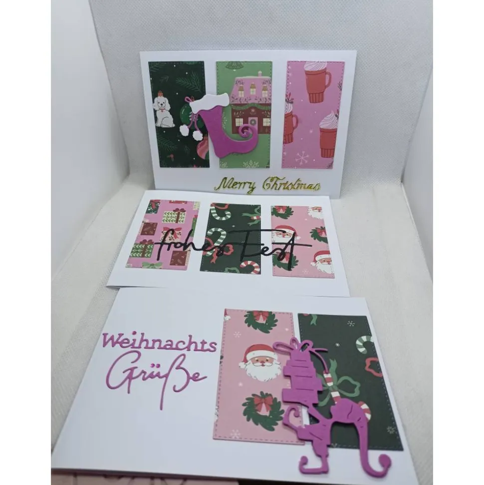 Alle 3 Karten haben den selben Stil und sind im modernen Look gebastelt.