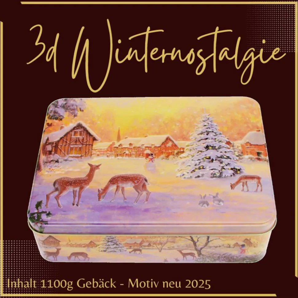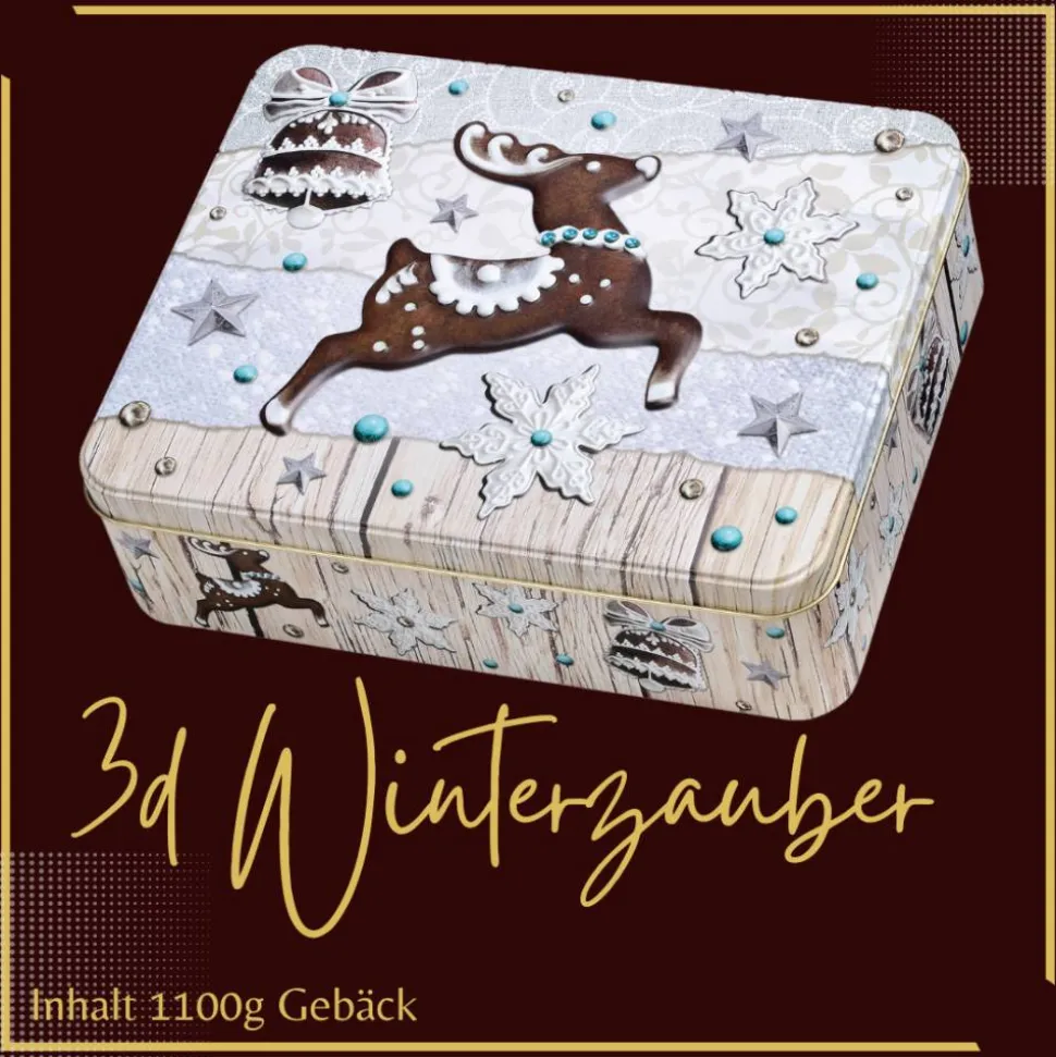 Verpackt ist das Ganze in einer wunderschönen lebensmittelechten Motivdose aus Weißblech und ist sicher ein Augenfang. Gefüllt wird die Dose mit 1100g bzw. 1200g Gebäck je nach Motiv wie nachfolgend beschrieben. Dank der speziellen Wellpapiereinlagen ist es bruchsicher verpackt und kann überallhin verschickt werden. Um etwas für die Nachhaltigkeit kann man die Box immer wieder mit unseren Vorratsmischungen auffüllen. Verschlossen gelagert bleibt das Gebäck darin immer frisch.