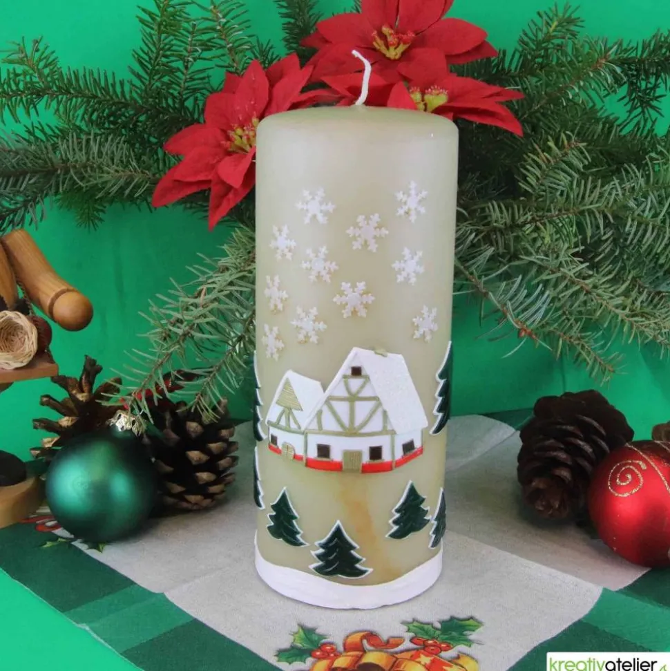 Winterkerze für festliche Dekoration oder als Geschenk
