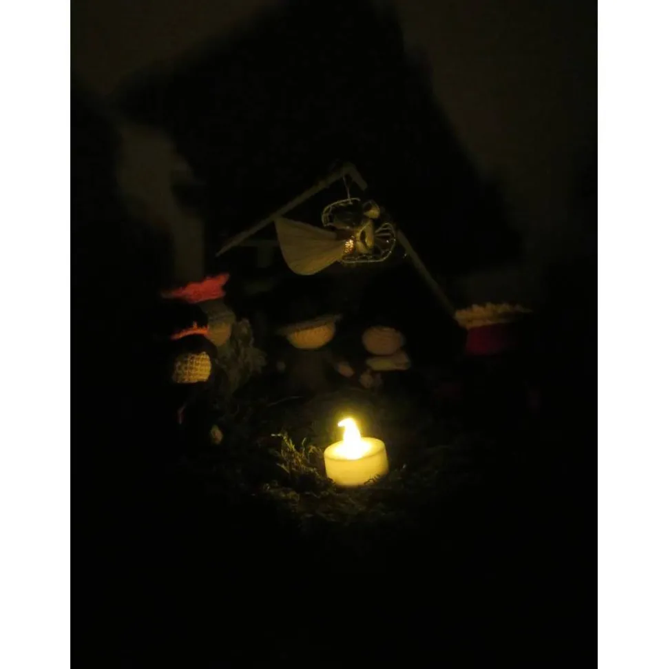Die Holzscheibe und die Krippe sind im Lieferumfang enthalten! Das LED-Licht ist batteriebetrieben und flackert leicht wie eine echte Kerze.
