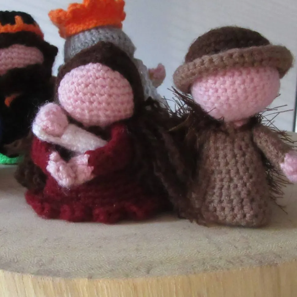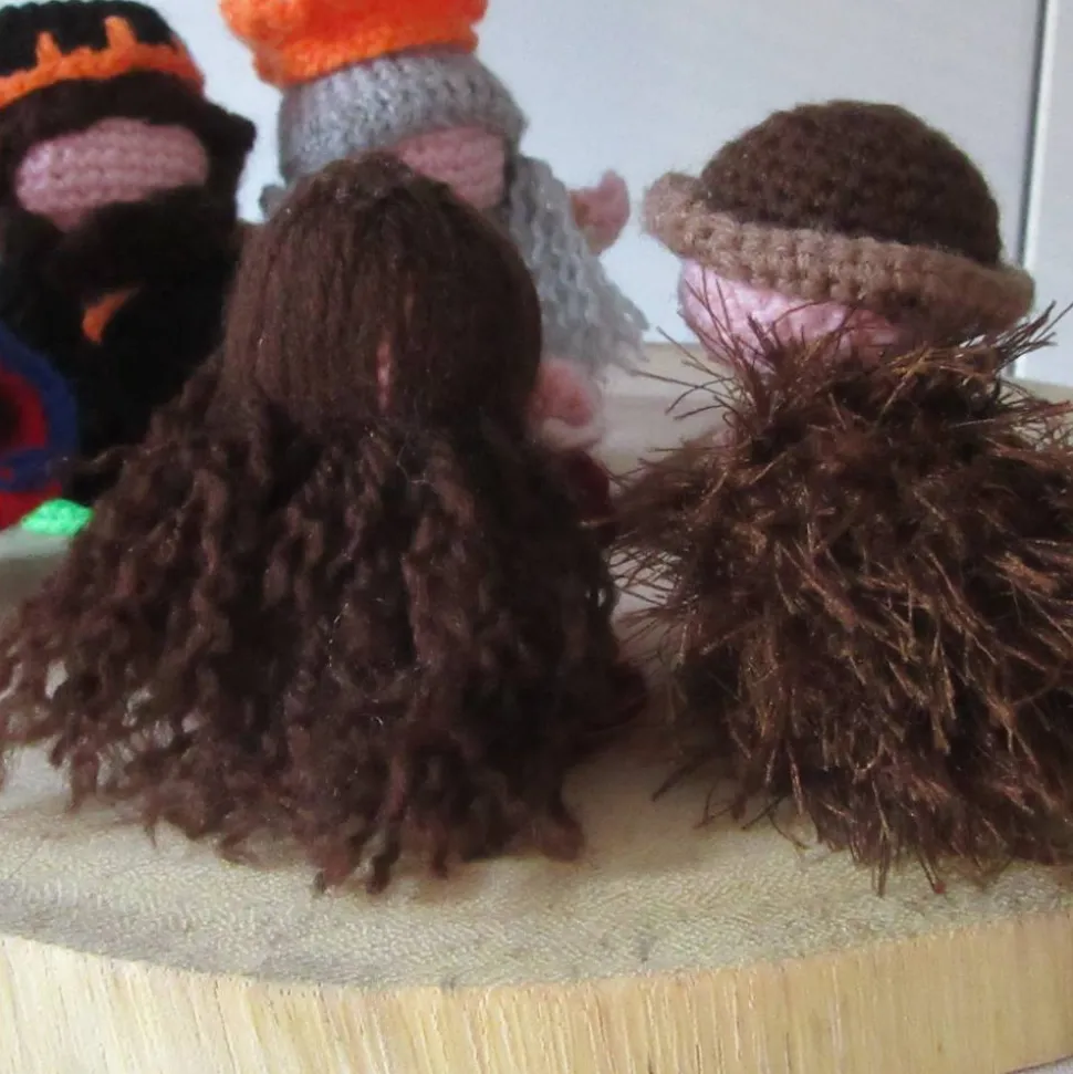 Als kleine Spielerei können die Frisuren und Hüte der männlichen Figuren abgenommen und durchgetauscht werden. Auf Wunsch können diese vor Lieferung (gegen einen geringen Aufpreis) auch angenäht werden. Auch der Stroh-Engel kann für eine bessere Haltbarkeit angeklebt werden.