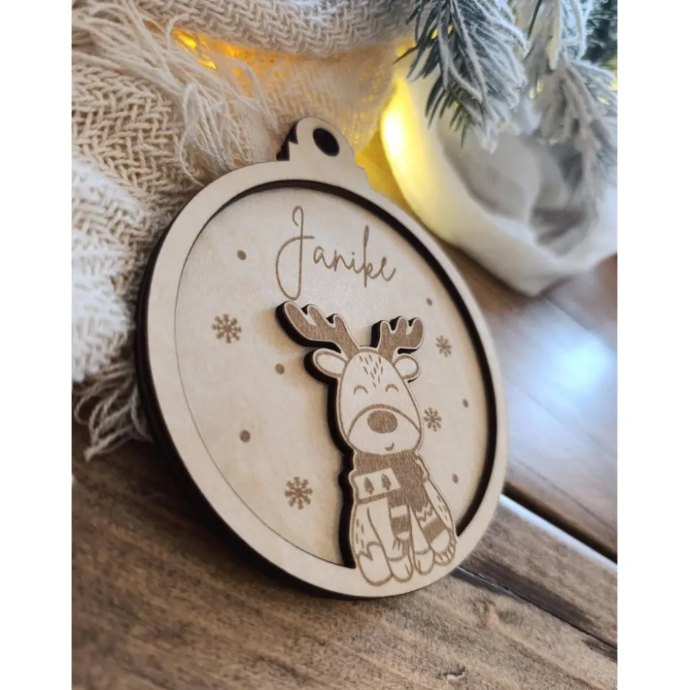 Mach dein Weihnachtsfest dieses Jahr noch besonderer mit unserer liebevoll gefertigten, personalisierten Weihnachtskugel mit Elchmotiv aus Holz.