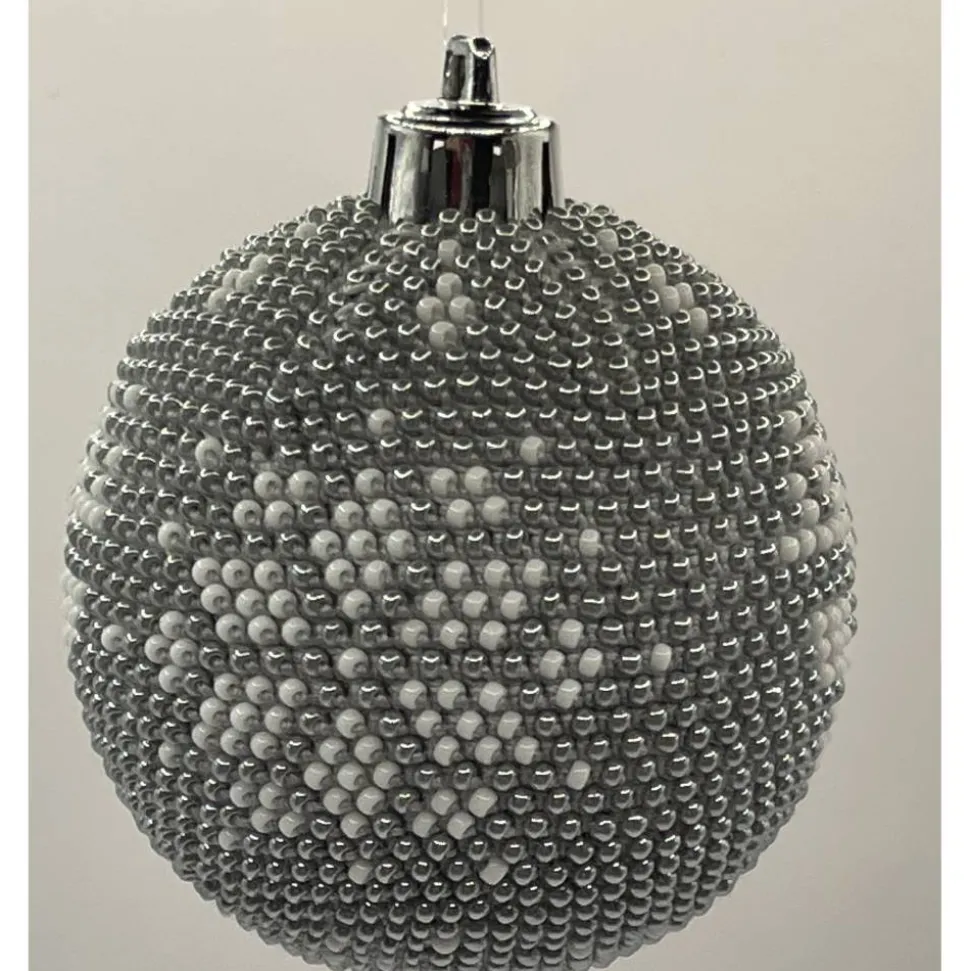 Es werden Kunststoff Weihnachtskugeln mit aufgefädelten Glasperlen umhäkelt.