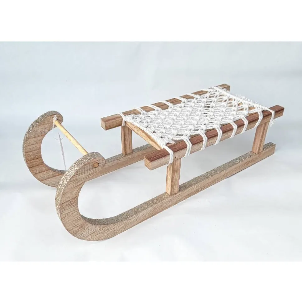 oder mit einem Holzschlitten ( ca. 40 cm lang und 14 cm hoch).