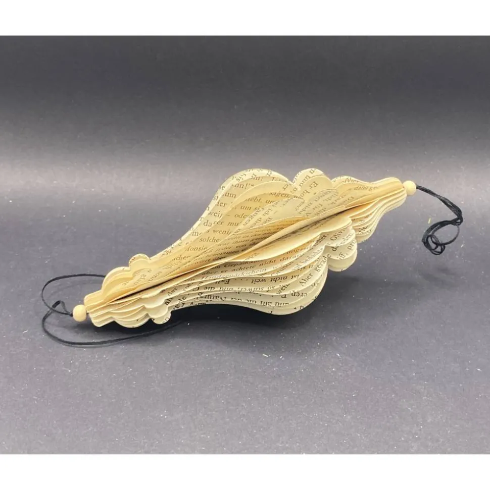 Ich biete euch hier Weihnachtsschmuck an, in liebevoller Handarbeit aus alten Buchseiten gefertigt. Die Aufhängung besteht aus einem fest verklebten Baumwollband und ist tlw. mit Holzperlen dekoriert.