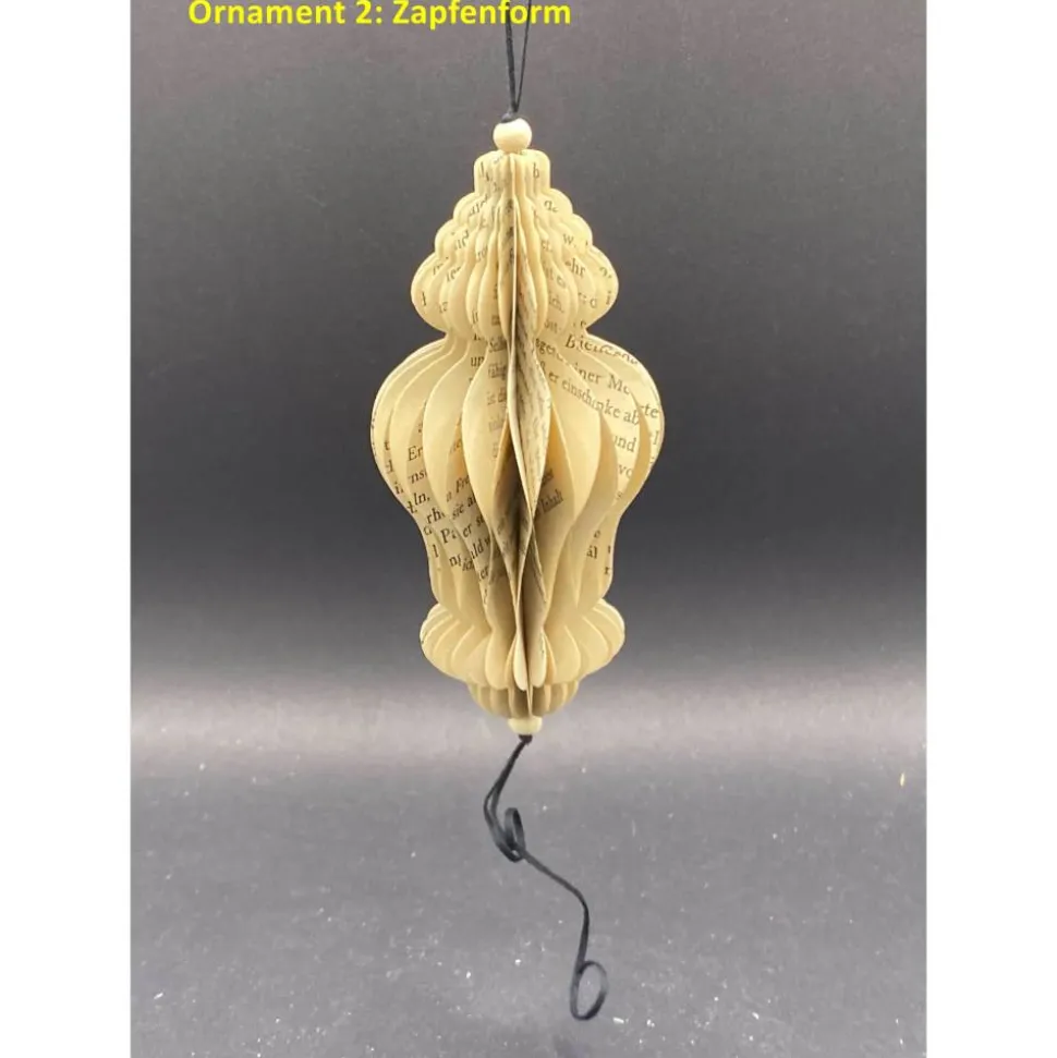 Weihnachtsschmuck aus Papier alte Buchseiten Upcycling Wabenoptik Christbaumschmuck