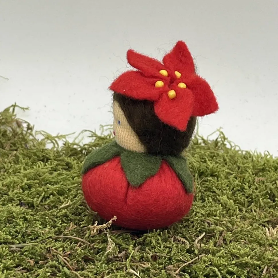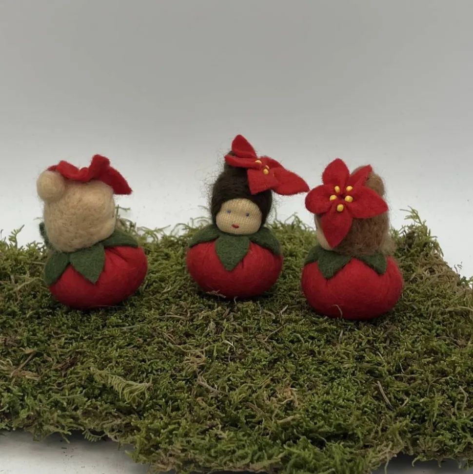 Sie sind ca. 6 cm groß. Sie haben eine Weihnachtssternblüte aus Filz auf dem Kopf.