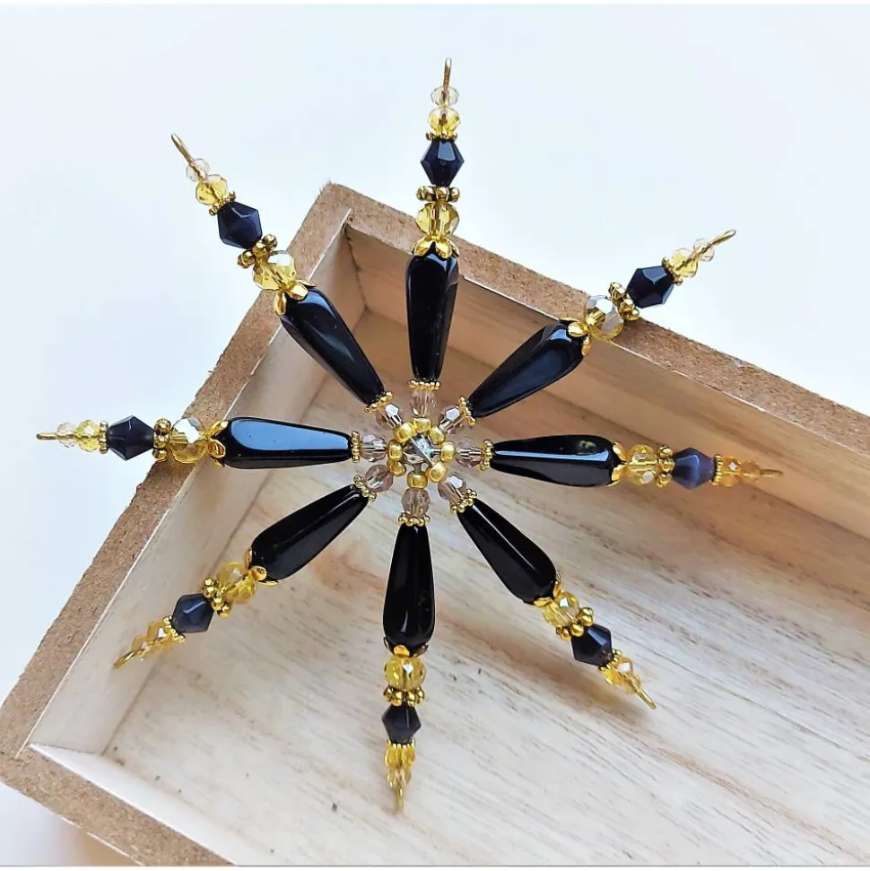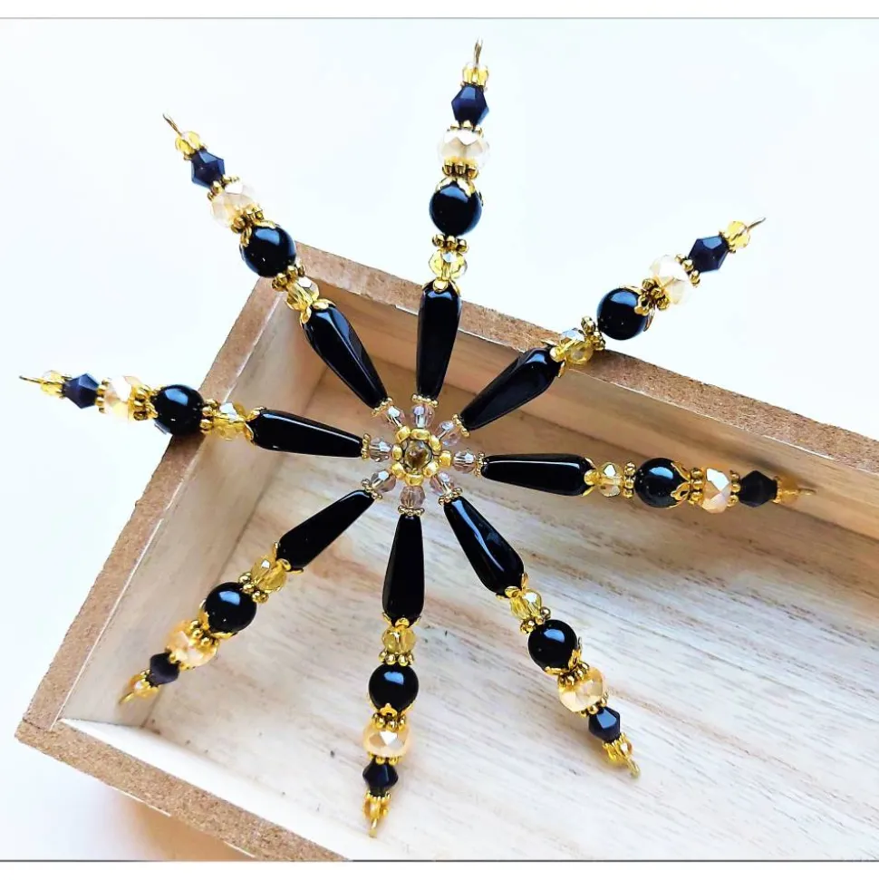 Die Sterne können beispielsweise im Gesteck dekoriert werden oder Sie können ein Band oder Haken zum Aufhängen einfädeln – Sie sind vielfältig als Deko einsetzbar und eignen sich wunderbar als besonderes Geschenk für die Winter- und Adventszeit. Die Sterne werden aus hochwertigen Materialien gefertigt, wie z.B. Glasperlen oder Perlen aus Halbedelsteinen.