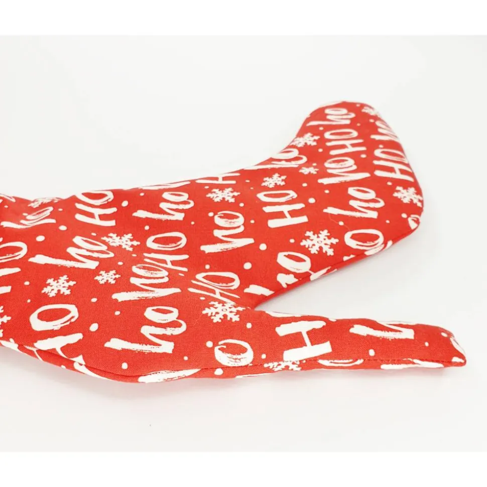 Der weihnachtlich bedruckte Stoff ist Baumwollstoff, der durch ein flauschiges Vlies gefestigt ist und