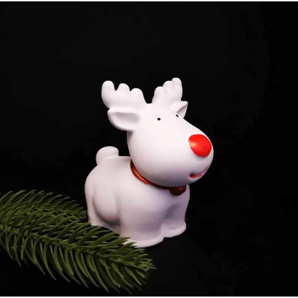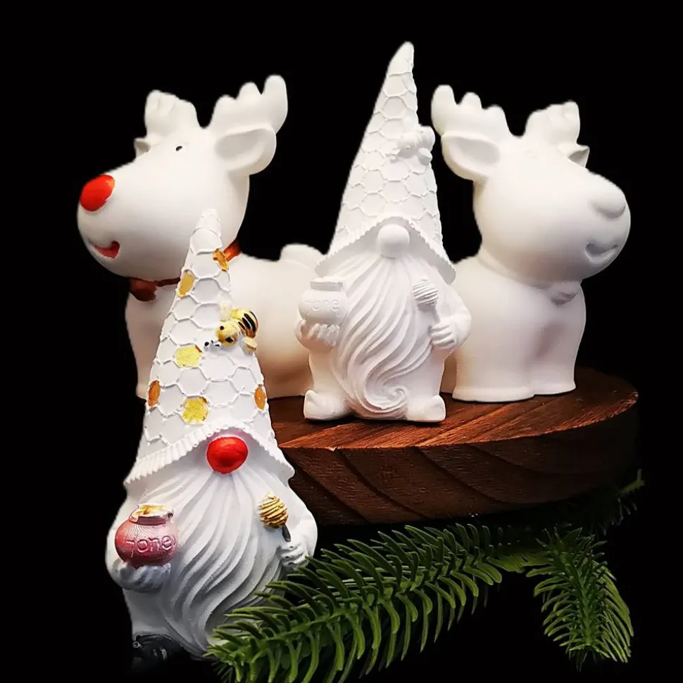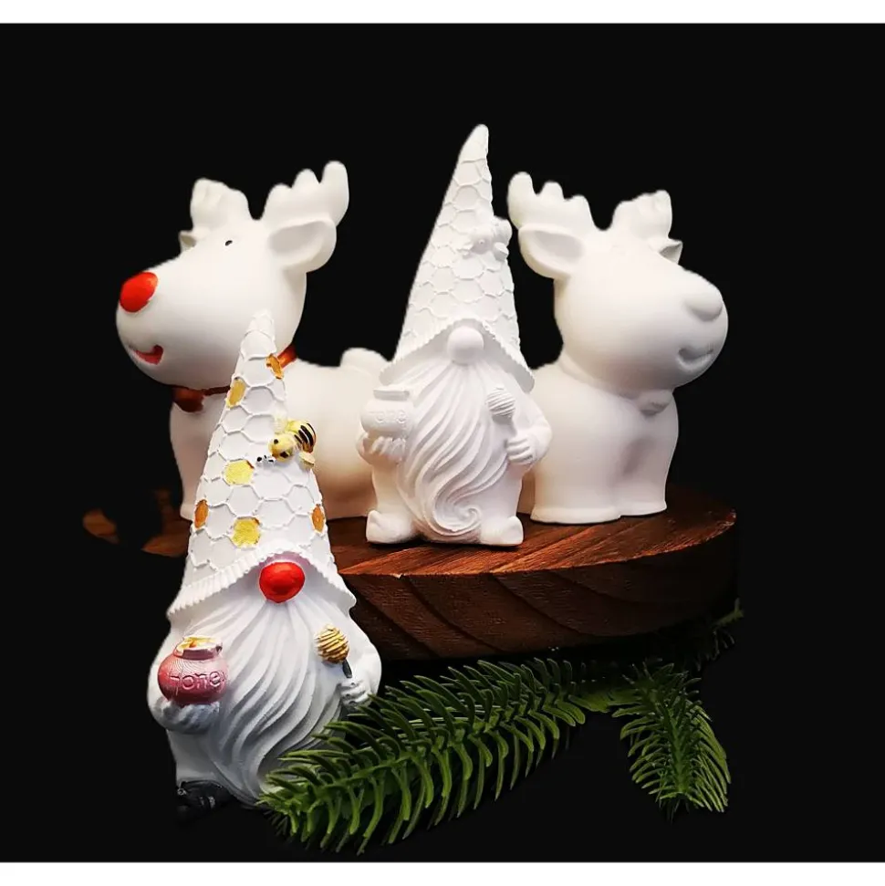Ein Wichtel ist ca. 9 bis 10 cm groß , das Rentier ca. 9,50 cm und kann in puristischem Weiß oder verziert in erworben werden.