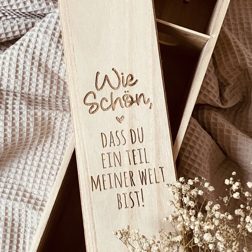 Die Weinboxen sind aus hochwertigem Holz gefertigt und bieten Platz für eine Flasche Wein. Gestalten Sie jetzt Ihre persönliche Weinbox!