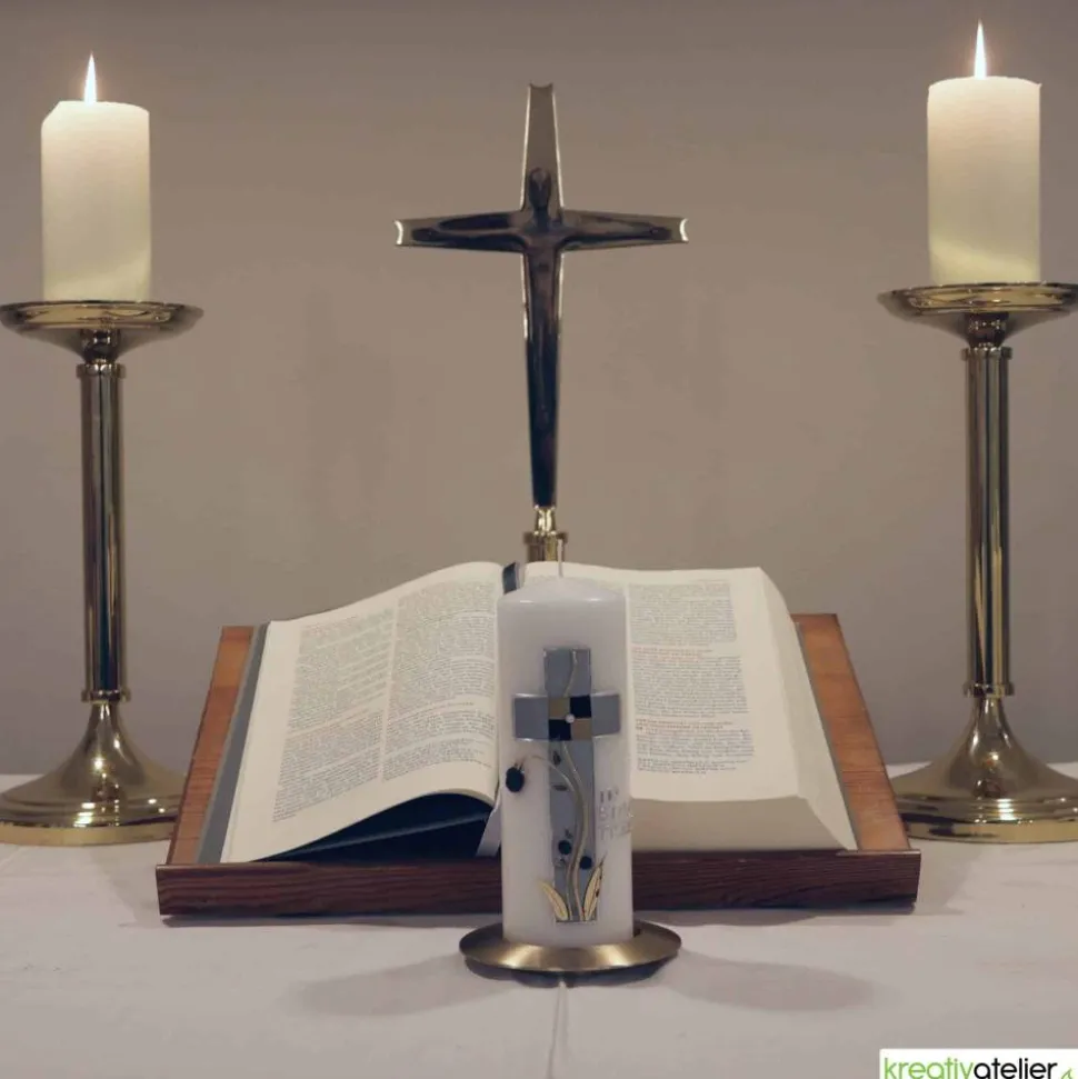 Diese Trauerkerze ist eine würdevolle und stilvolle Art, um an einen verstorbenen Menschen zu erinnern. Mit viel Liebe zum Detail und individueller Personalisierung ist sie ein edles und langlebiges Andenken. Die Symbolik des Kreuzes und der Rosen schaffen eine besinnliche Atmosphäre und können helfen, die Trauer zu bewältigen.