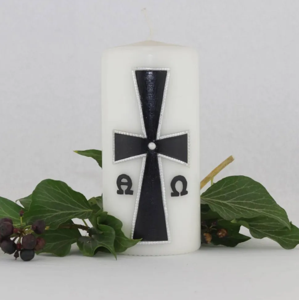 In schweren Zeiten brauchen wir Trost und Halt. Eine Trauerkerze kann dabei helfen, das Gedenken an den Verstorbenen zu bewahren und ihm einen Platz im Herzen zu geben. Die Trauerkerze mit byzantinischem Kreuz, schwarz/silber verziert, ist eine besonders stilvolle und würdevolle Art, dem Verstorbenen zu gedenken.