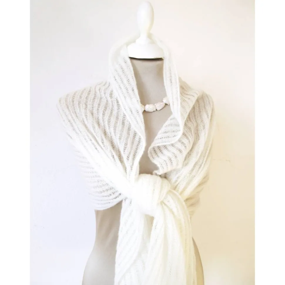 Wie eine Wolke auf der Haut, wärmt das Tuch auf sanfte Weise und ergänzt auf zurückhaltende Art das Festtagsoutfit.