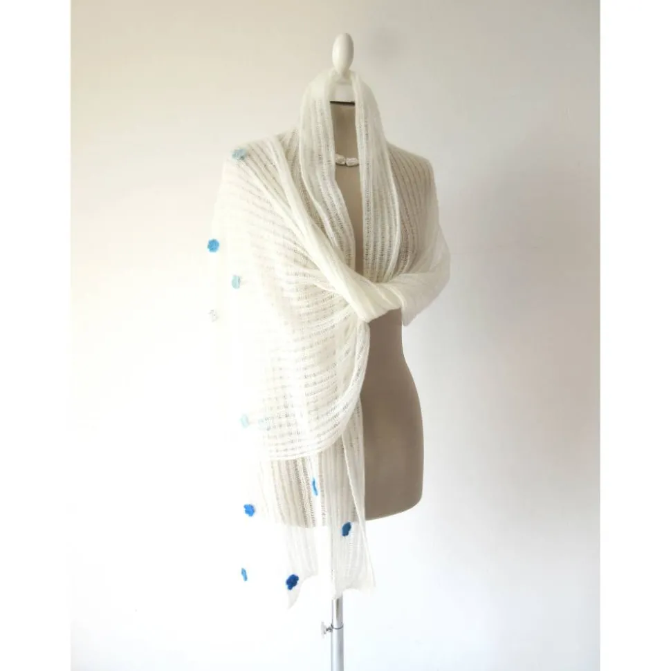 Die weiche Stola ist halbtransparenten und aus dünnen italienischen Garnen handgefertigt.