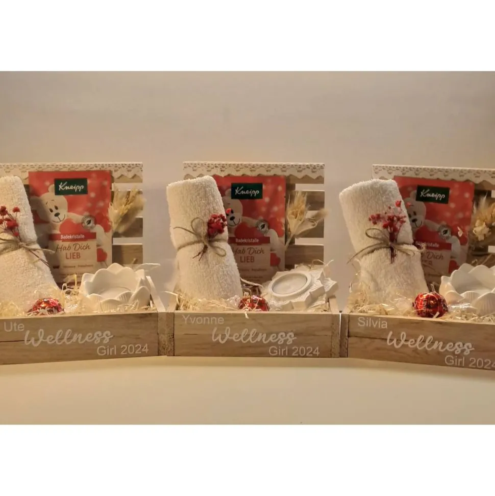 Das Geschenkset kann farblich und inhaltlich individuell angepasst werden – für ein Wellness-Erlebnis ganz nach Deinen Wünschen.
