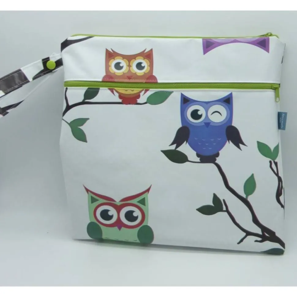 Die Nasstasche mit ihren wasserfesten Innenfächern ist komplett aus Wachstuch genäht.