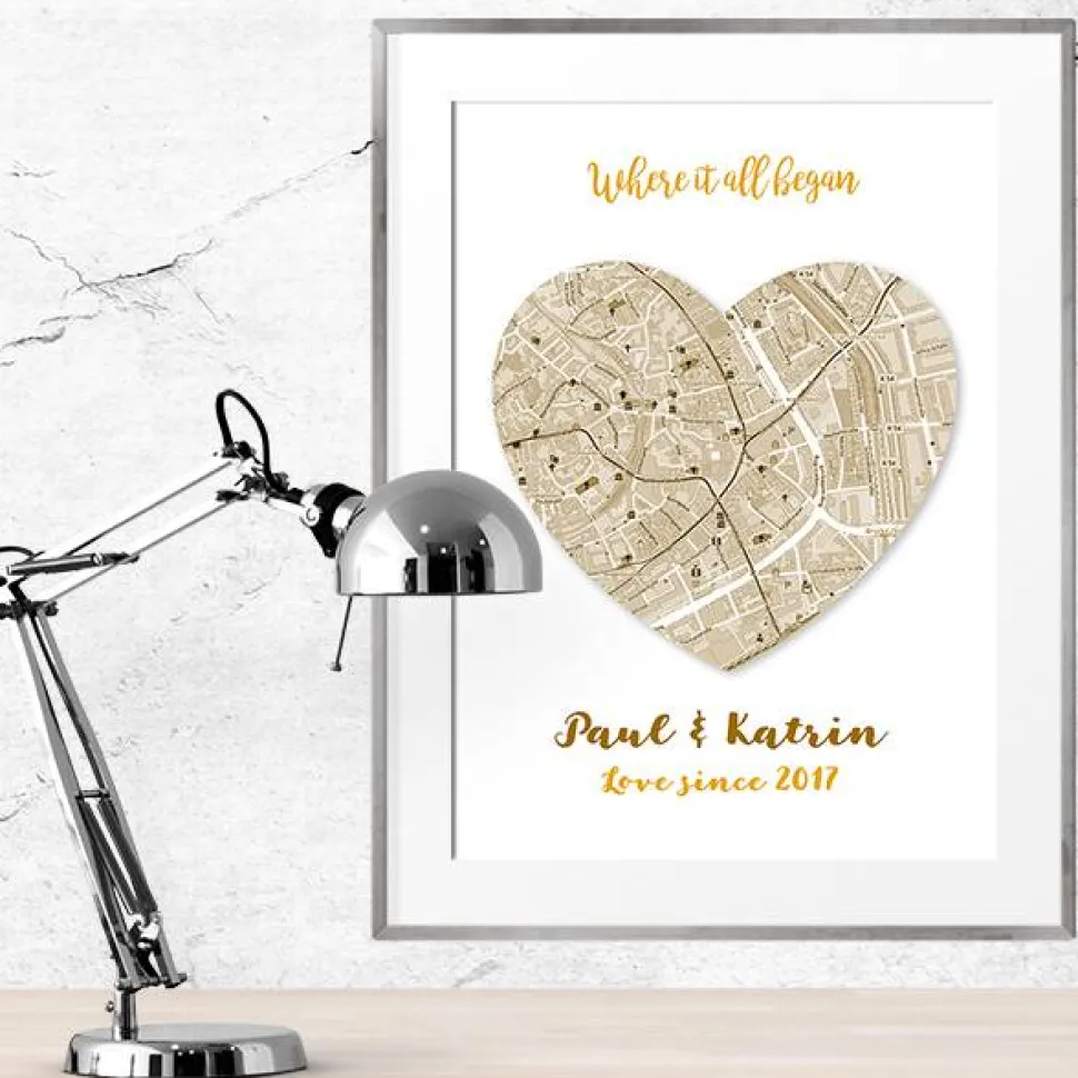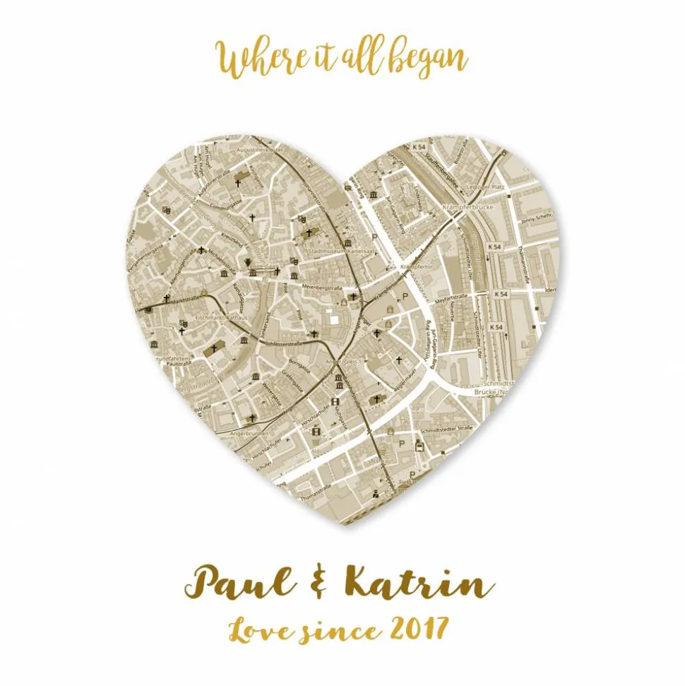 Schreibt uns einfach in das Kommentarfeld, welche Stadt, Region oder welchen Stadtteil ihr in den Druck integriert haben wollt. Der Spruch über dem Herz (where it all began) kann gegen einen Wunschspruch getauscht werden. Auch das „Love since“ kann verändert werden