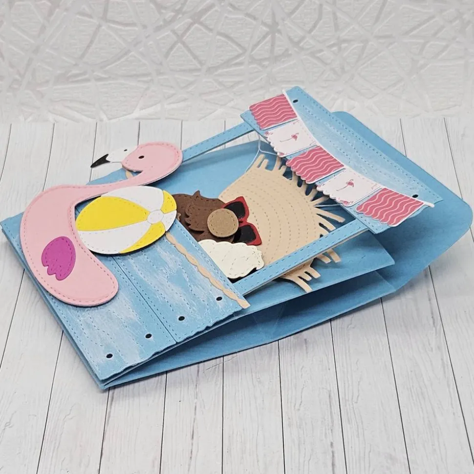 Dieser fröhliche Wichtel auf Urlaubsabenteuer verbreitet pure Sommerlaune! Mit seinem breiten Strohhut, der stylischen Sonnenbrille und einem leckeren Eis in der Hand genießt er das Leben in vollen Zügen. Neben ihm liegen ein bunter Wasserball und ein aufblasbarer Flamingo-Schwimmreifen, die für echtes Urlaubsfeeling sorgen.