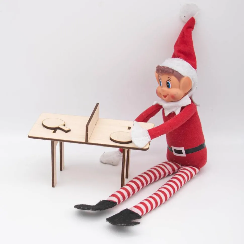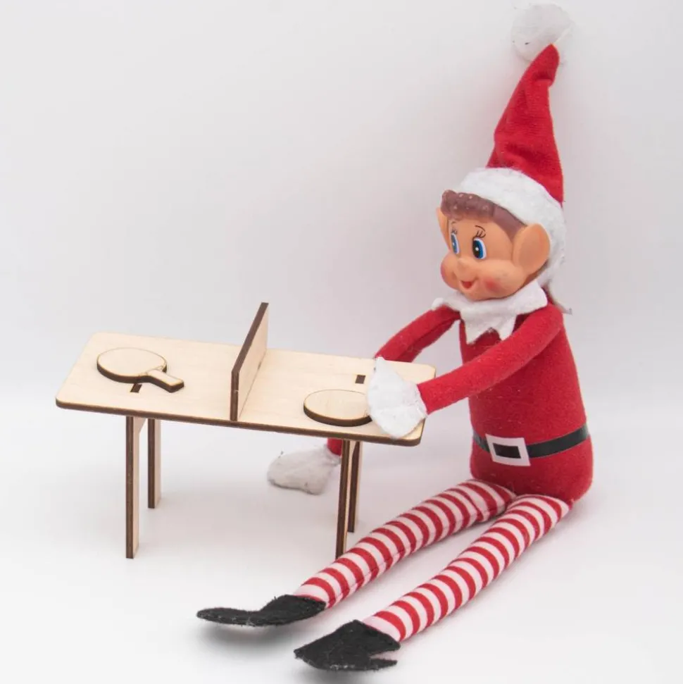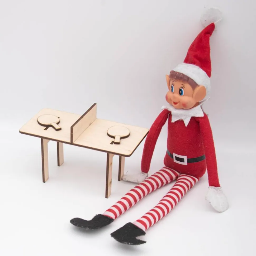 Dieser bezaubernde Mini-Tischtennistisch ist das ideale Accessoire für den Wichtel, der seine Tischtennis-Tricks trainieren möchte! Mit einer Größe von 14 cm Länge, 7,5 cm Breite und 7 cm Höhe passt er perfekt in jede Wichtelwelt. Hergestellt aus hochwertigem 3 mm dickem Birkensperrholz, besteht der Tisch aus vier Teilen, die kinderleicht ineinandergesteckt werden.
