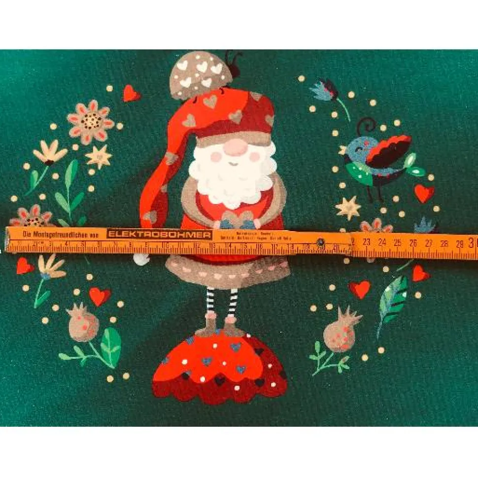 -> Das Haupt-Motiv ist ein wunderbar süßer Weihnachtswichtel. Die Farben sind ROT, WEISS, hellbraun und jeansblau.