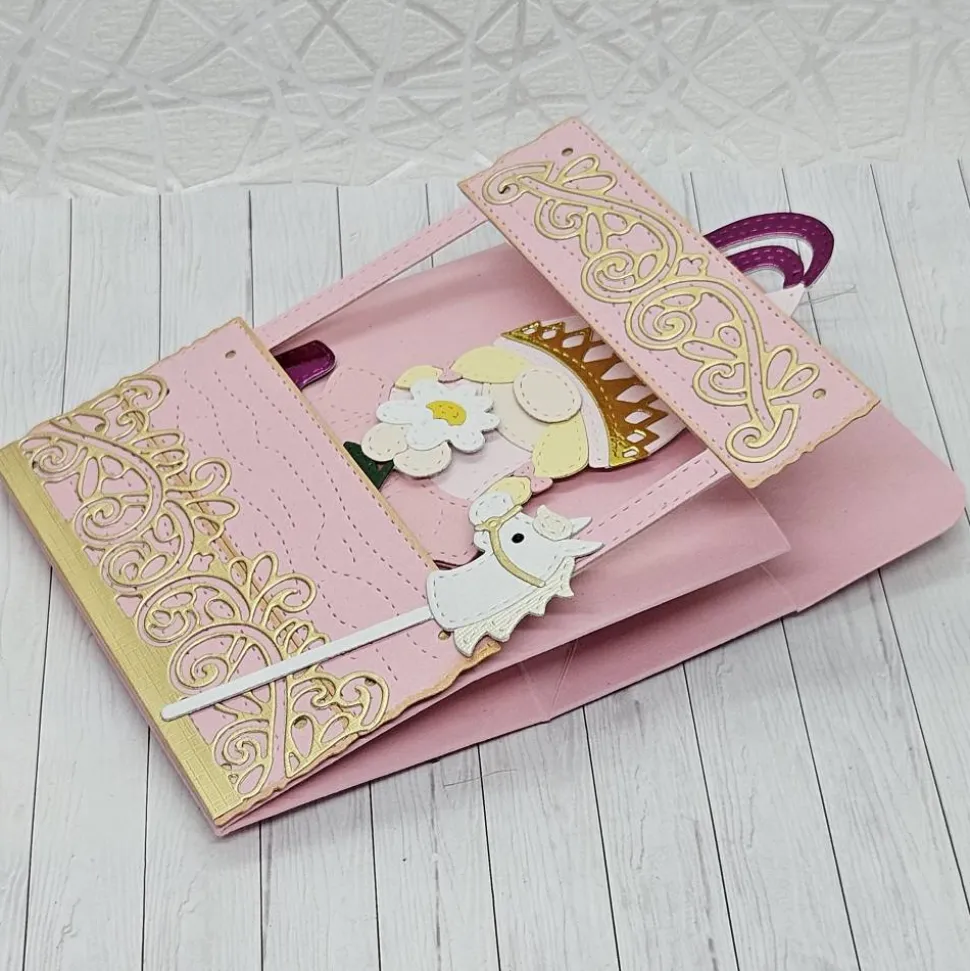 Tauche ein in eine Welt voller Märchen und Magie mit dieser liebevoll gestalteten Wichtelbox „Prinzessin“. Jede Box wird in sorgfältiger Handarbeit aus hochwertigem 300 g/m² Fotokarton gefertigt und mit zarten Effektpapieren sowie eleganten goldenen Ornamentverzierungen geschmückt. Die feinen Details – vom goldenen Diadem bis hin zur zartrosa Farbgestaltung – machen diese Geschenkbox zu einem echten Hingucker für kleine und große Prinzessinnen.