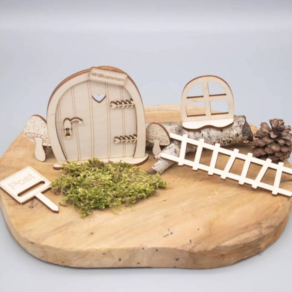 Hinweis: Bitte beachten Sie, dass das Holz naturbelassen ist und Sie es nach Belieben bemalen oder dekorieren können, um Ihrem Wichtel ein noch persönlicheres Zuhause zu schaffen!