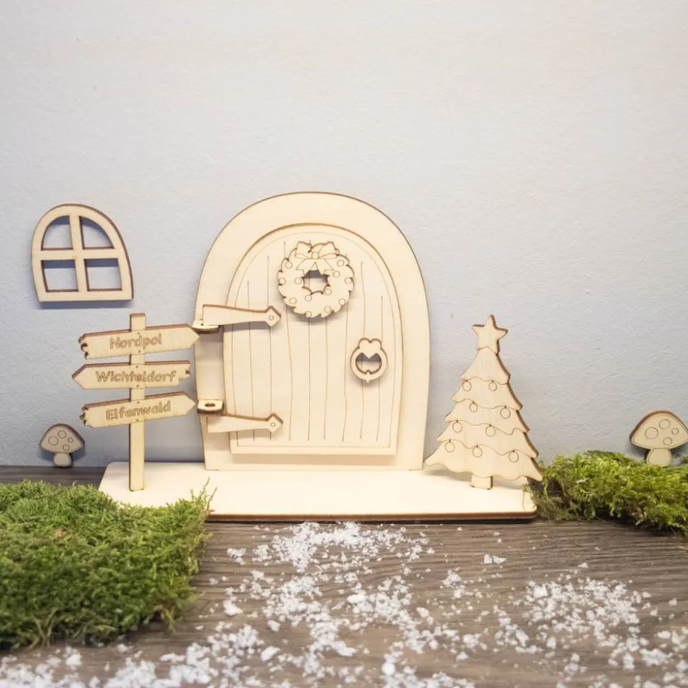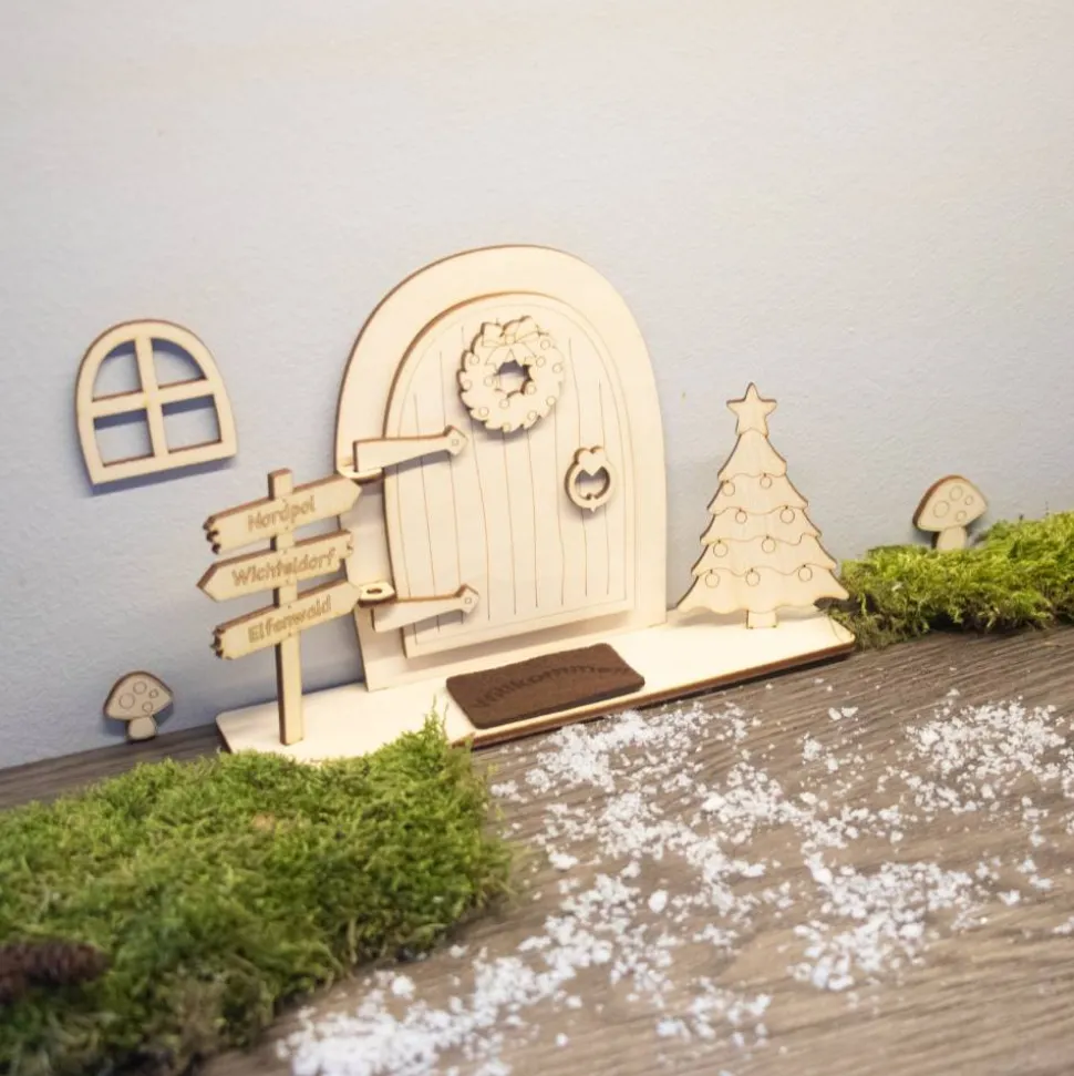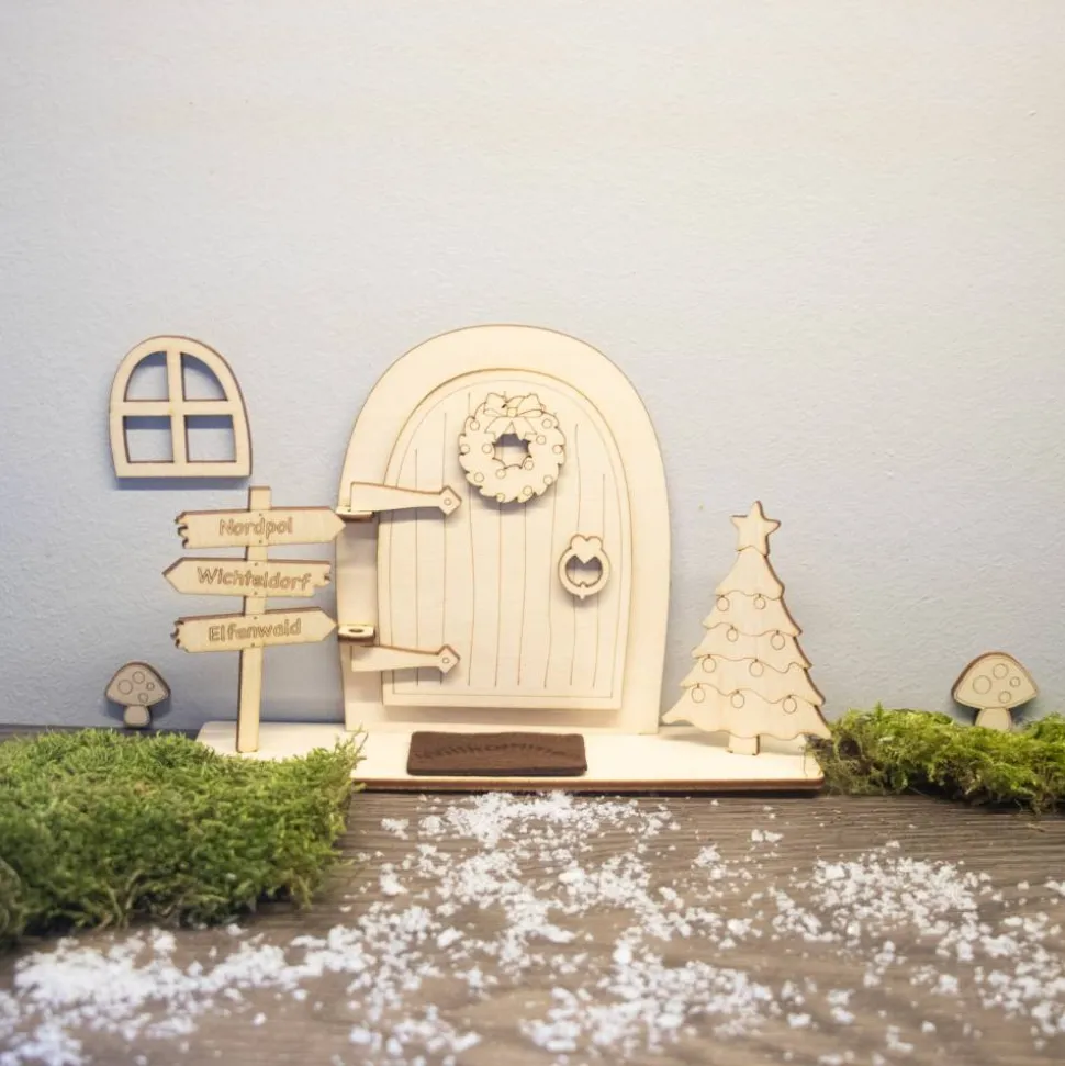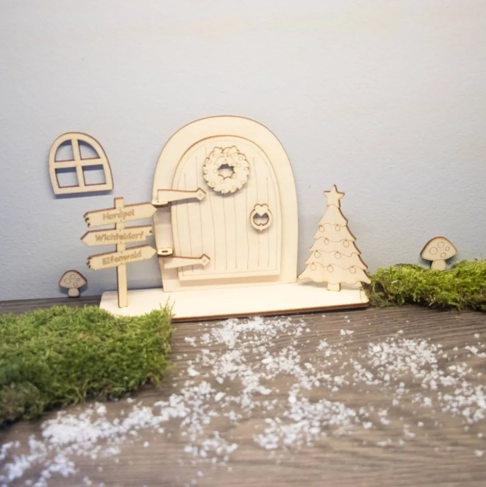 Durch die Holzmaserung kann jede Tür etwas unterschiedlich sein. Versendet werden die Wichteltüren als Deutsche Post Großbrief mit Sendungsverfolgung.