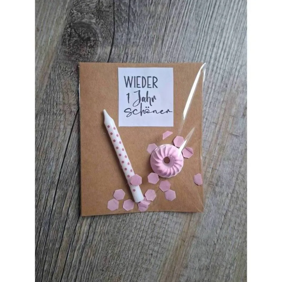 Wieder ein Jahr schöner / Minigugelhupf / Geburtstagskerze / Geschenkverpackung