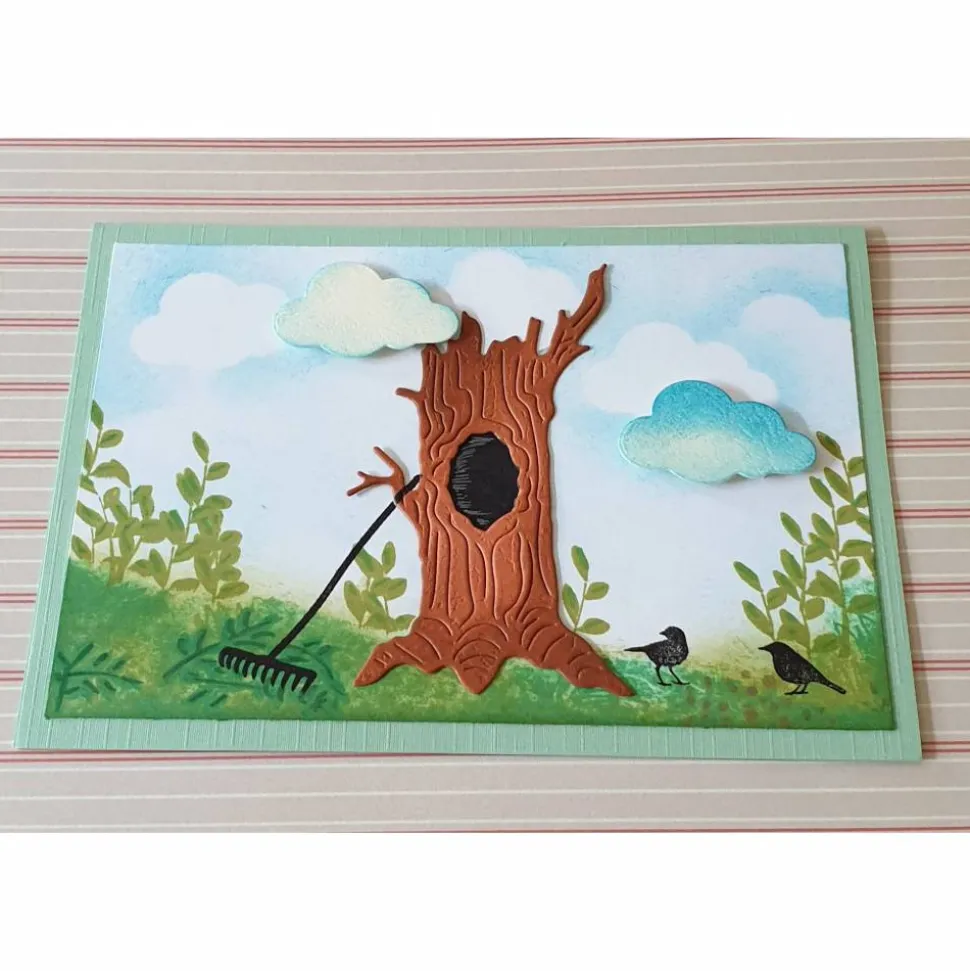 Die Karte wurde mit wunderschönen Motiven beklebt und bestempelt und ausgemalt.