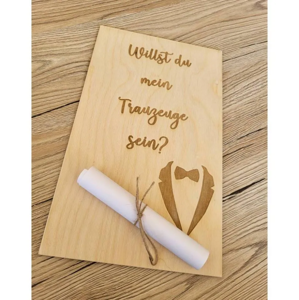 Wie fragt man am besten, ob der Bruder/Schwester, Freund/Freundin usw… der Trauzeuge/die Trauzeugin werden möchte? Wie wäre es mit diesem tollen Brett und deinem personalisierten Brief dazu? Gerne gestalte ich dir dieses Brett nach deinen eigenen Wünschen? Solltest du Änderungen möchten darfst du dich jederzeit melden. Hierbei handelt es sich um ein 3mm Pappelholz.