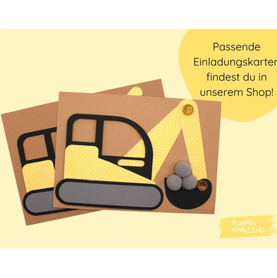 Das liebevoll gestaltete DIY-Set enthält alles, was du brauchst, um eine individuelle Girlande mit Bagger-Motiven selbst zu basteln – ideal für kleine Baumeister und begeisterte Baustellen-Fans.