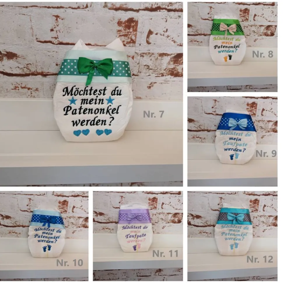Dieses Produkt steht in keiner Verbindung mit Procter & Gamble. Procter & Gamble übernimmt keine Haftung für die bestickten Windeln.