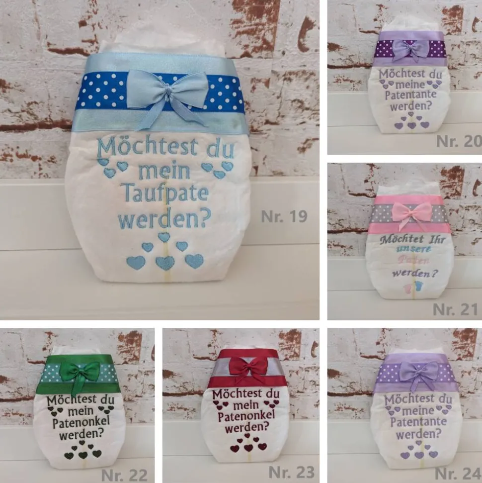 Dieses Produkt steht in keiner Verbindung mit Procter & Gamble. Procter & Gamble übernimmt keine Haftung für die bestickten Windeln.