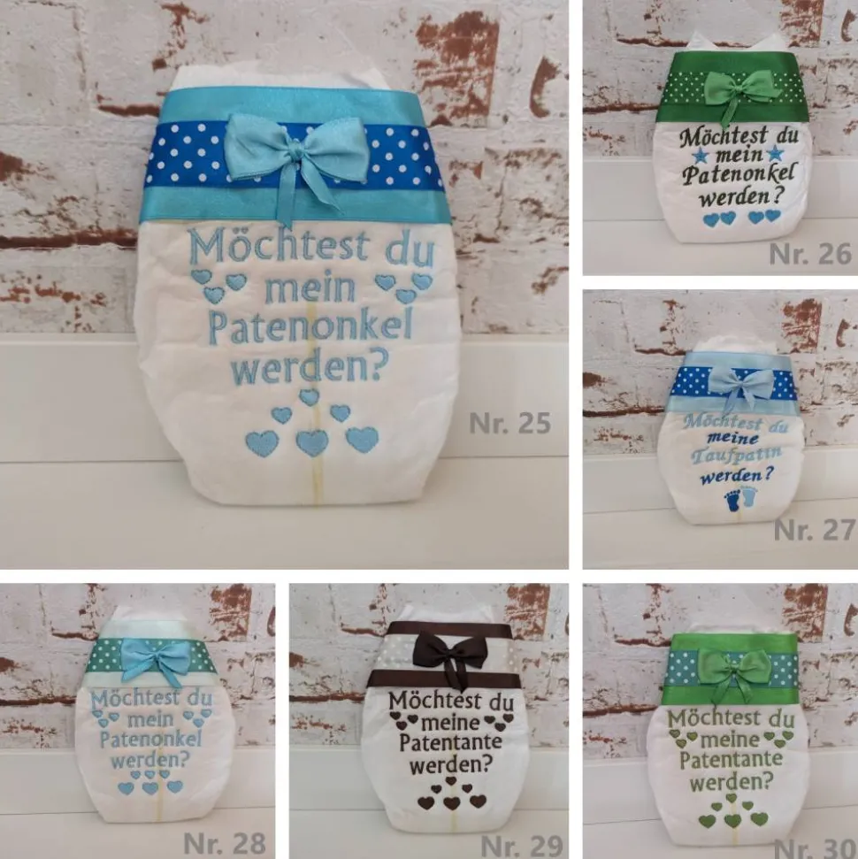 Dieses Produkt steht in keiner Verbindung mit Procter & Gamble. Procter & Gamble übernimmt keine Haftung für die bestickten Windeln.