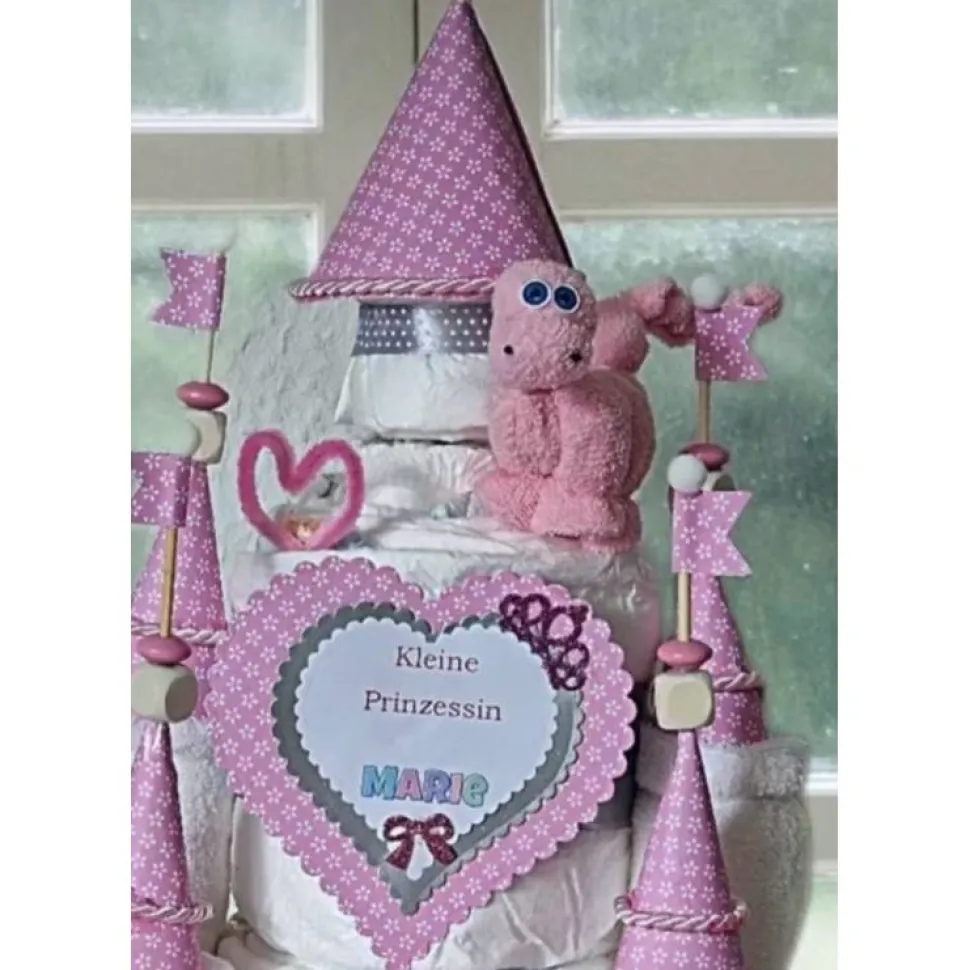 Windeltorte/Windelschloss für Mädchen personalisiert mit Namen