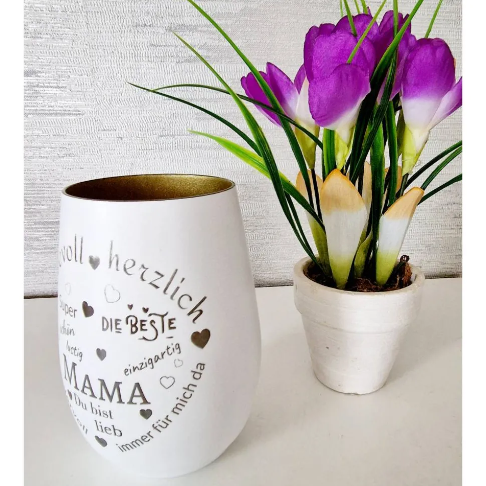 Überrasche deine Mama mit dem gravierten Windlicht „Mama“ – einem liebevollen und persönlichen Geschenk, das von Herzen kommt. Dieses stilvolle Windlicht ist in zwei eleganten Farbkombinationen erhältlich: Weiß mit Bronze oder Weiß mit Gold. Es bringt nicht nur warmes Licht in jeden Raum, sondern auch eine emotionale Botschaft voller Wertschätzung und Liebe.