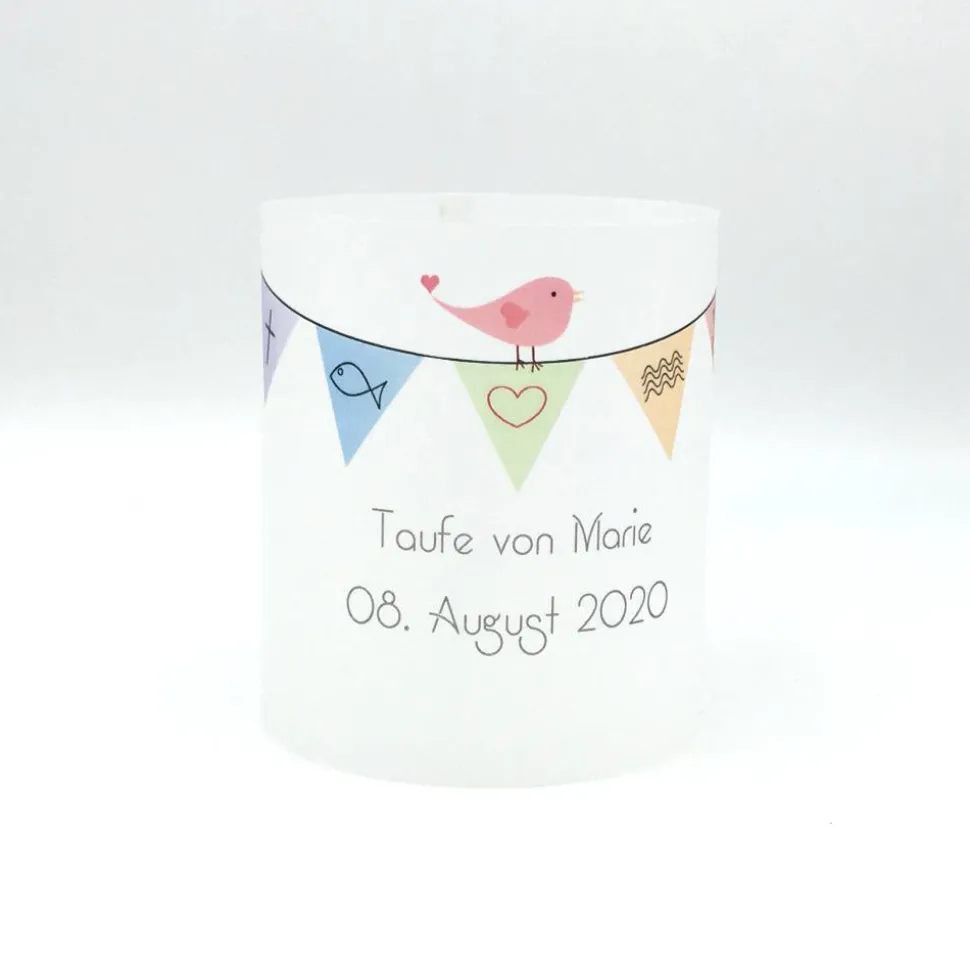 Das Windlicht ist individuell auf sehr festes Transparentpapier gedruckt.