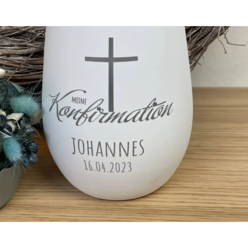 Durch die Gravur schimmert das Kerzenlicht in der gewählten Beschichtung.