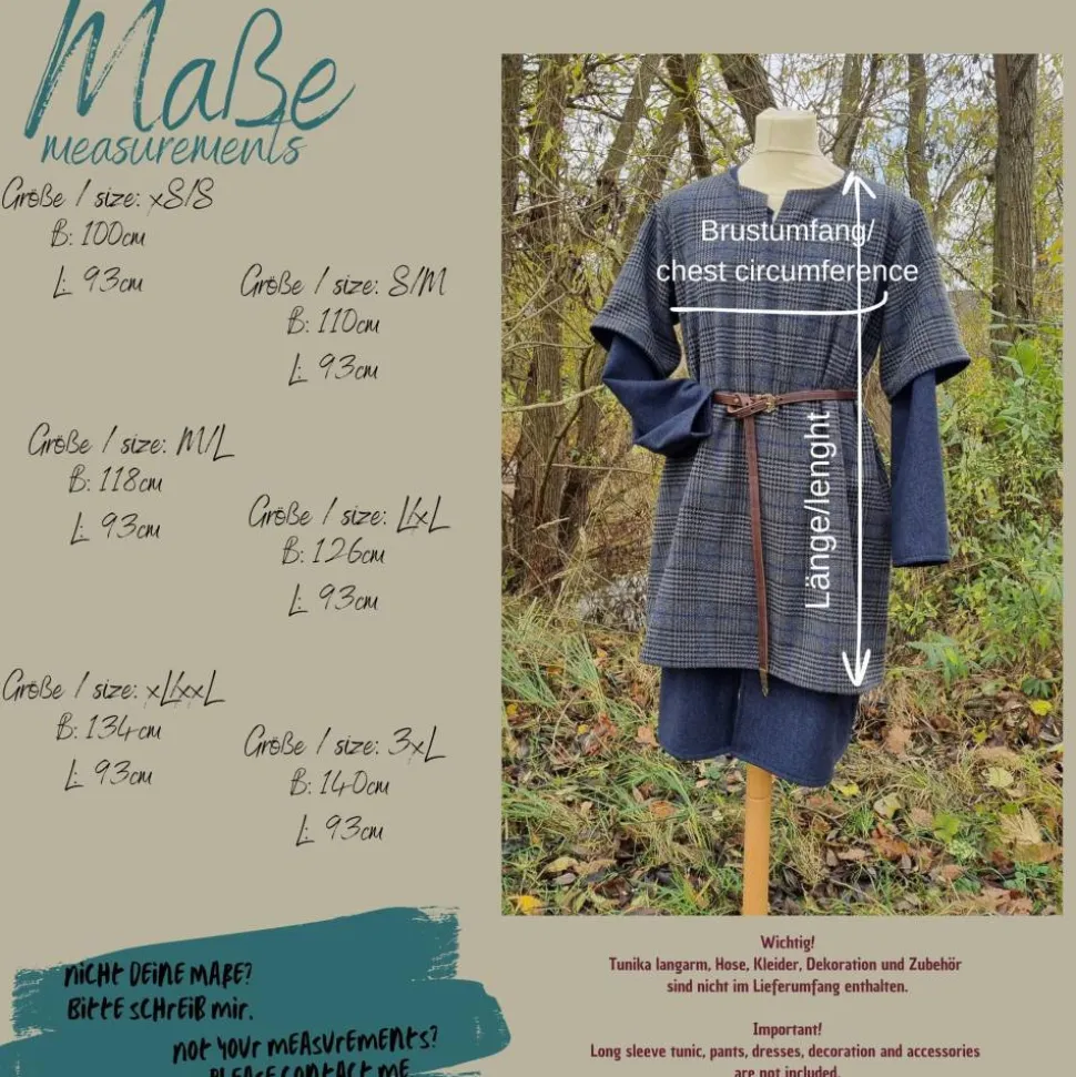 Tauche ein in die Welt des Mittelalters mit meiner Winter Tunika aus hochwertiger Wolle und einem Hauch von Polyester. Das grau, schwarz und blaue Karomuster verleiht der Tunika einen einzigartigen Look, der perfekt für die kalte Jahreszeit geeignet ist. Besonders in Kombination mit der langen Fischgrat Wolltunika ein Hingucker.
