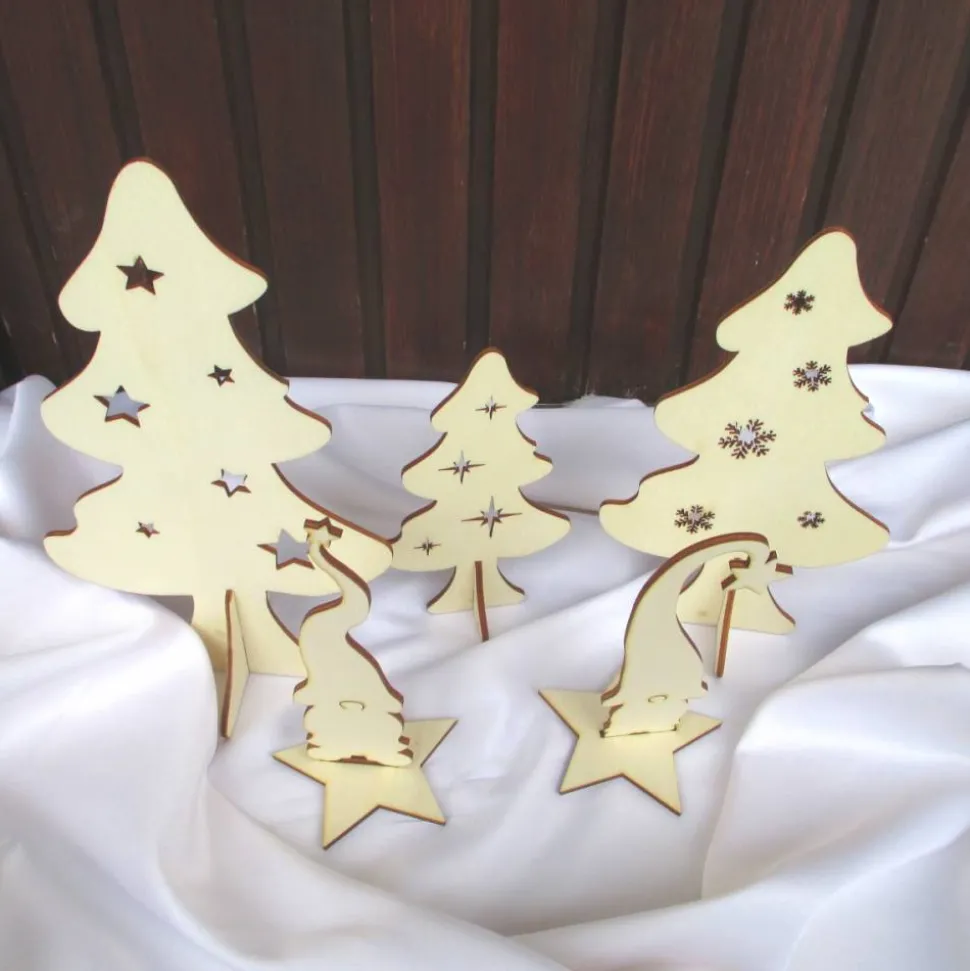 Winter-Wichtel-Wald 5er-Set aus Holz