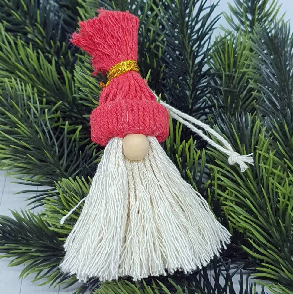 Entdecke den lustigen Winterwichtel rot! Dieser kleine Kerl ist ein handgefertigter Dekoanhänger, der Dein Zuhause im Winter und zur Weihnachtszeit verschönert. Dank der hochwertigen Baumwollkordel in Makrameetechnik und der charmanten Nase aus unbehandeltem Holz ist jeder Wichtel ein echtes Unikat.