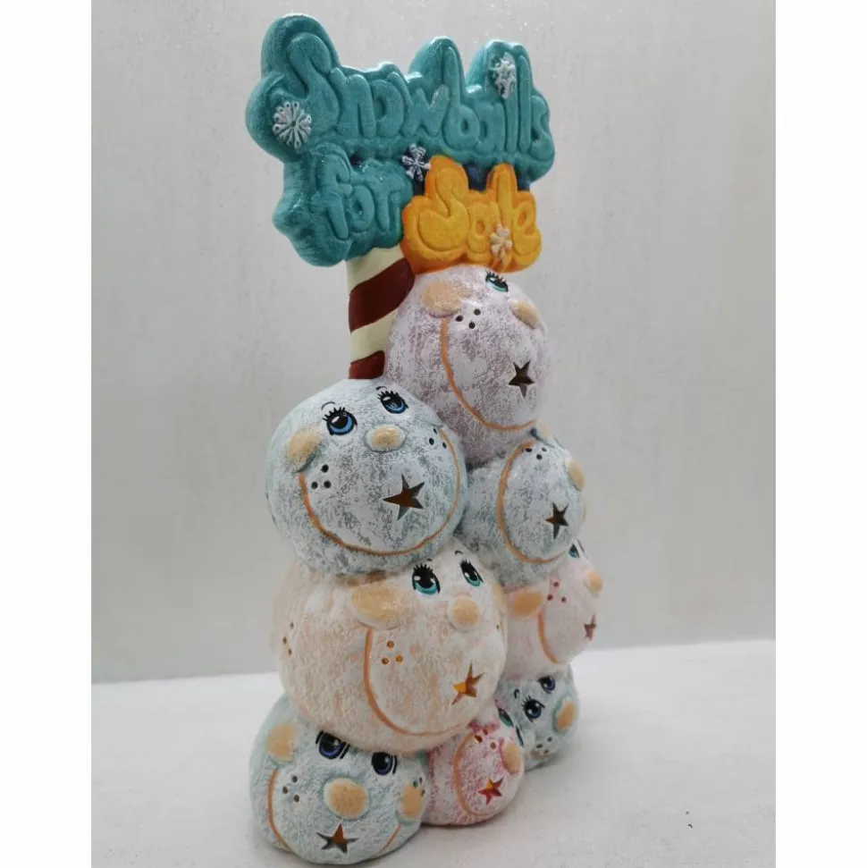Der lustige Schneeballturm ist ca 34cm hoch und 20cm breit. Er ist aus Keramik, handgemalt und wetterfest versiegelt worden. Durch ausgeschnittene Sterne kann er beleuchtet werden. Der Turm ist witterungsbeständig und kann draussen stehen, sollte aber vor Frost geschützt werden.