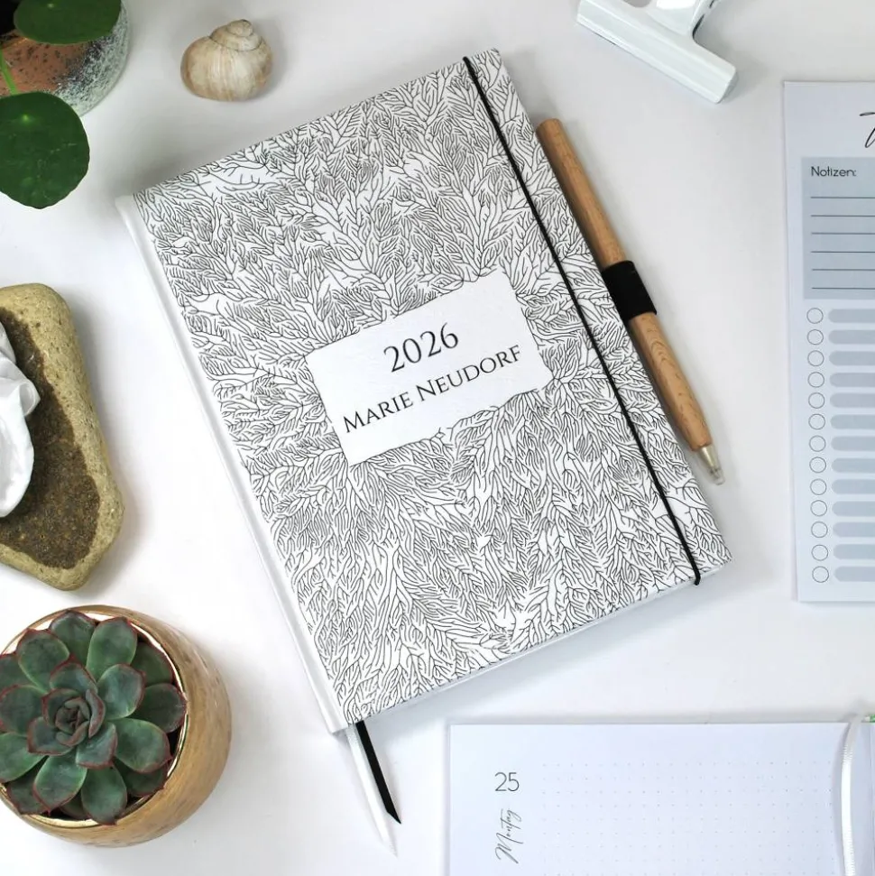 Robuster und durchdachter Jahres- und Tagesplaner mit grafischem, sich verzweigenden, wachsenden Strukturen,
