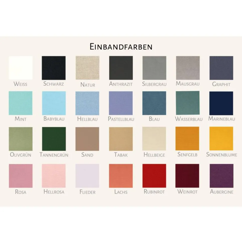 Personalisierter A5 Hardcover-Kalender 2026 in feinem Leineneinband in diversen Farben individuell mit deinen Angaben bedruckt. Dein stilvoller Begleiter fürs neue Jahr – individuell, hochwertig & durchdacht gestaltet.