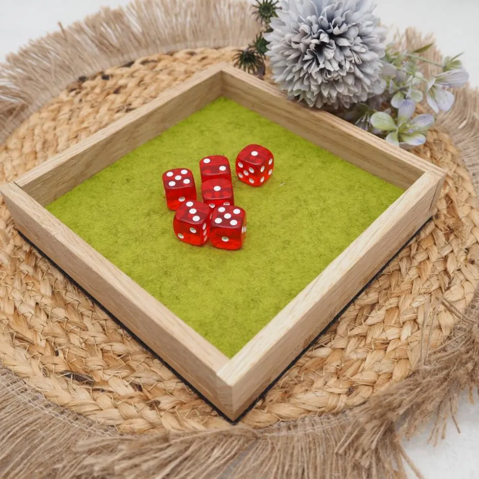 Durch die hochwertigen Materialien – 100% Wolle und Eiche – erhältst Du ein langlebiges und stilvolles Accessoire für jede Spielrunde. Stelle Dir Dein Würfelbrett individuell zusammen und hebe Dein Spielerlebnis auf ein neues Level!
