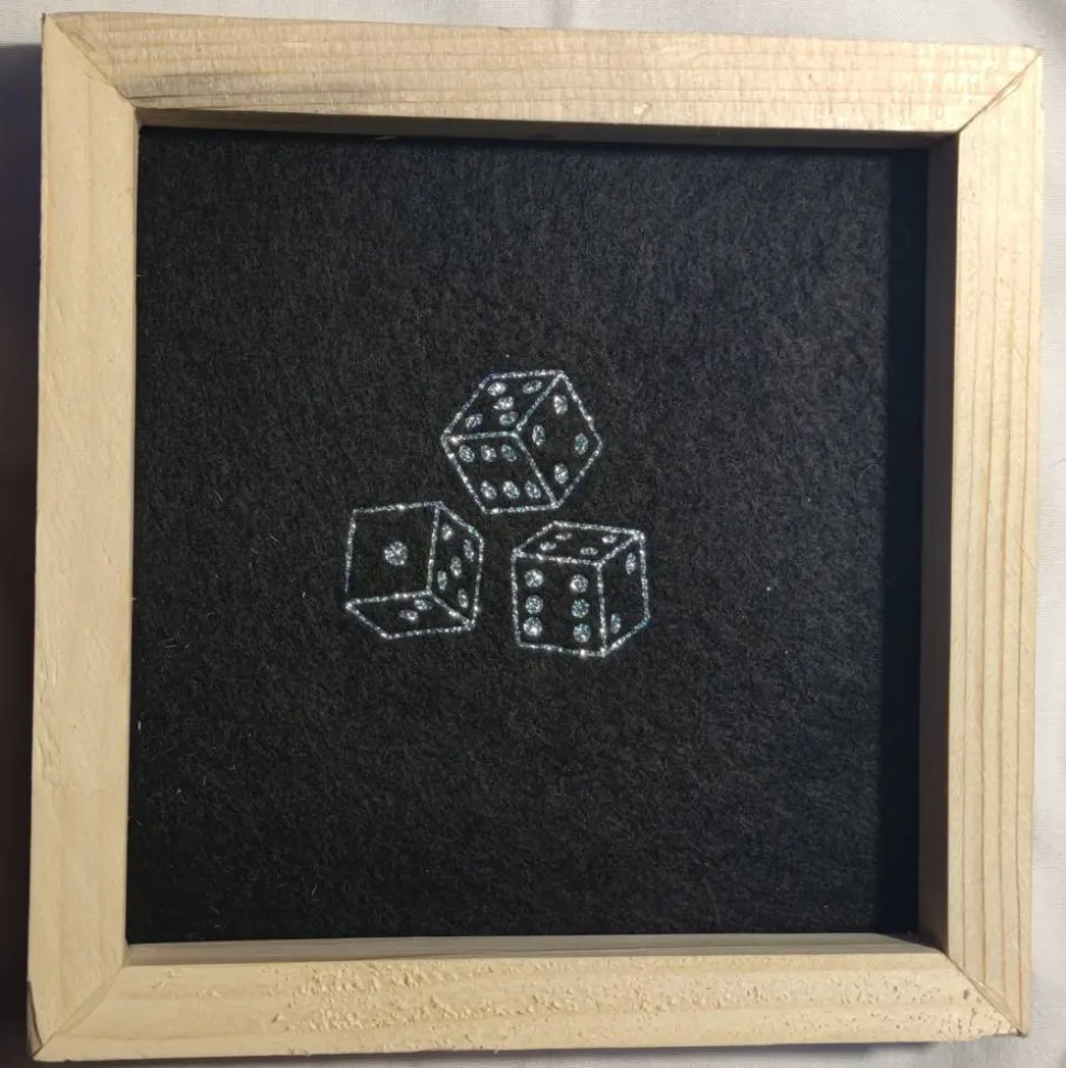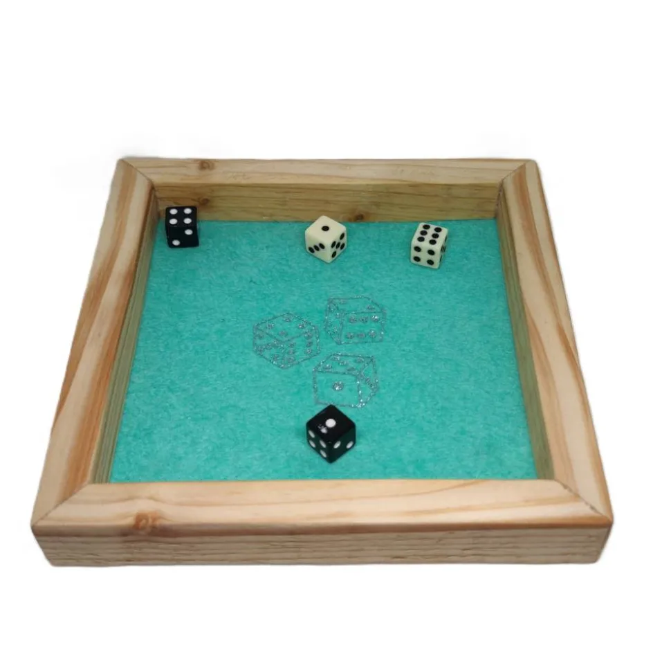 Durch den Rahmen wird verhindert das die Würfel auf den Boden fallen bzw auf dem ganzen Tisch verteilt werden.