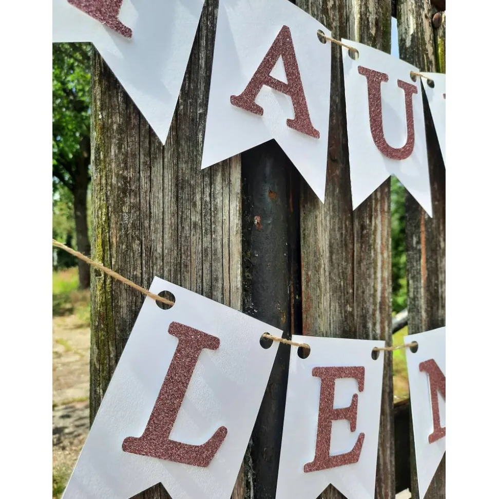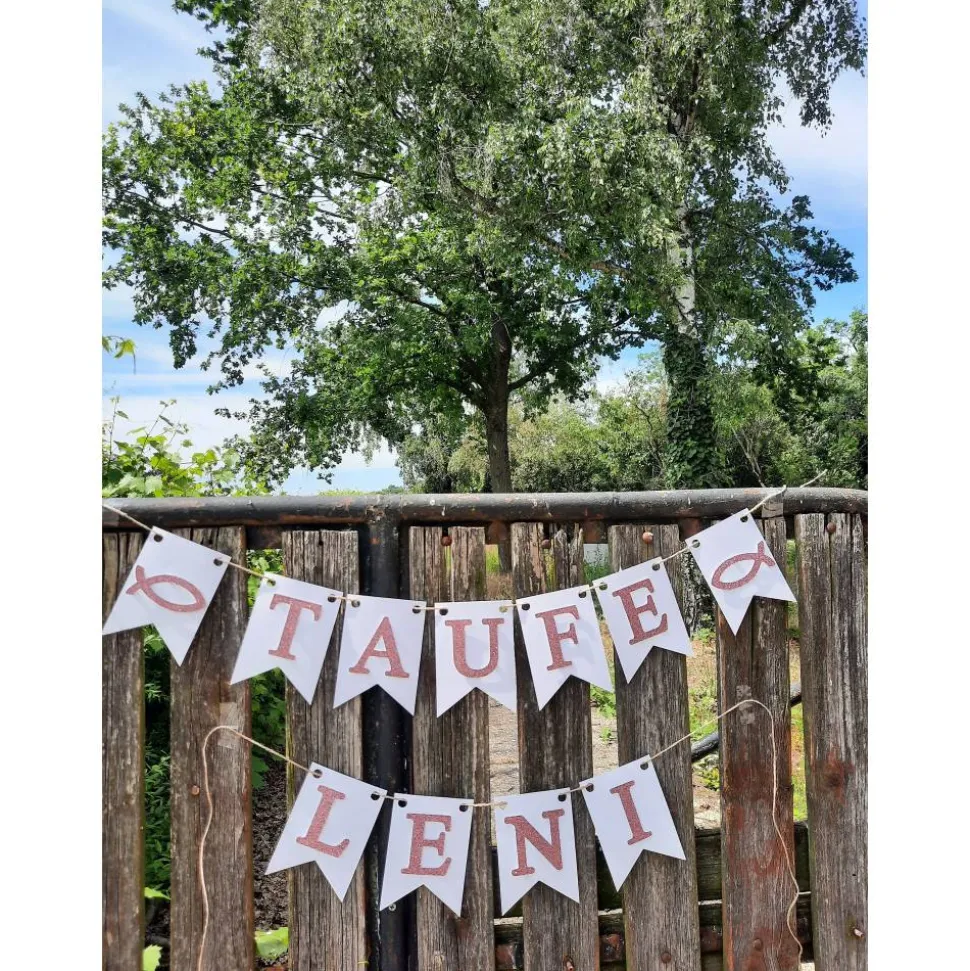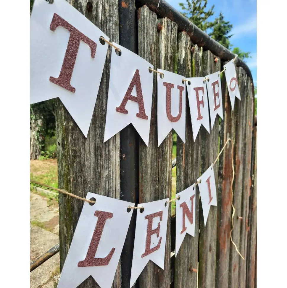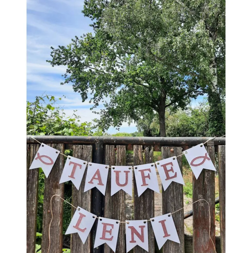 Wunderschöne Girlande zur Taufe. Auf Wunsch personalisiert mit dem Namen des Taufkindes.