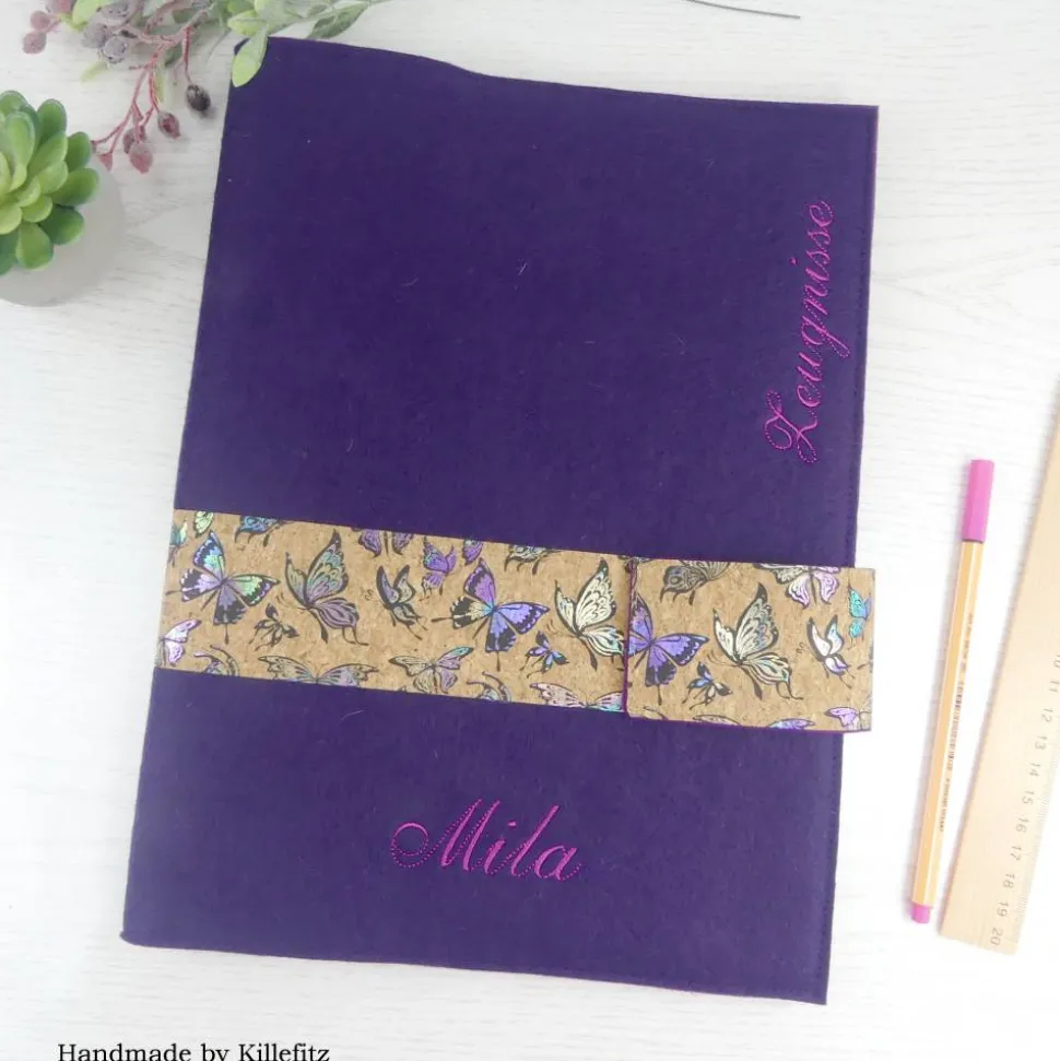 Entdecke die wunderschöne, personalisierte Zeugnismappe aus lilafarbenem Filz und Kork! Diese hochwertige Dokumentenmappe im DIN A4-Format begeistert nicht nur zum Schulanfang, sondern begleitet das Schulkind stilvoll durch die gesamte Schulzeit.