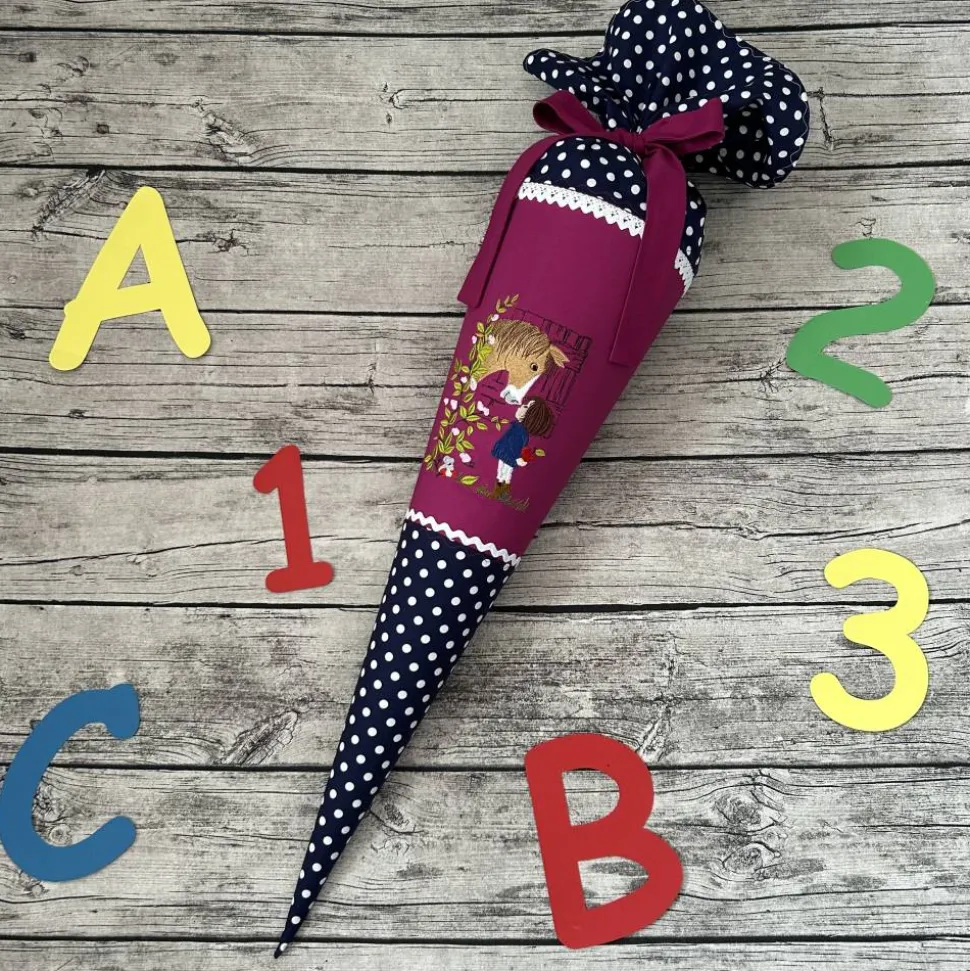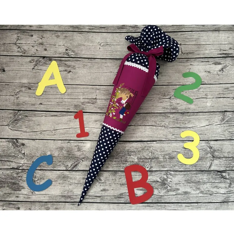 Die Schultüte ist 70cm groß, Plus der Stoff zum verschließen und genäht aus 100% Baumwolle.